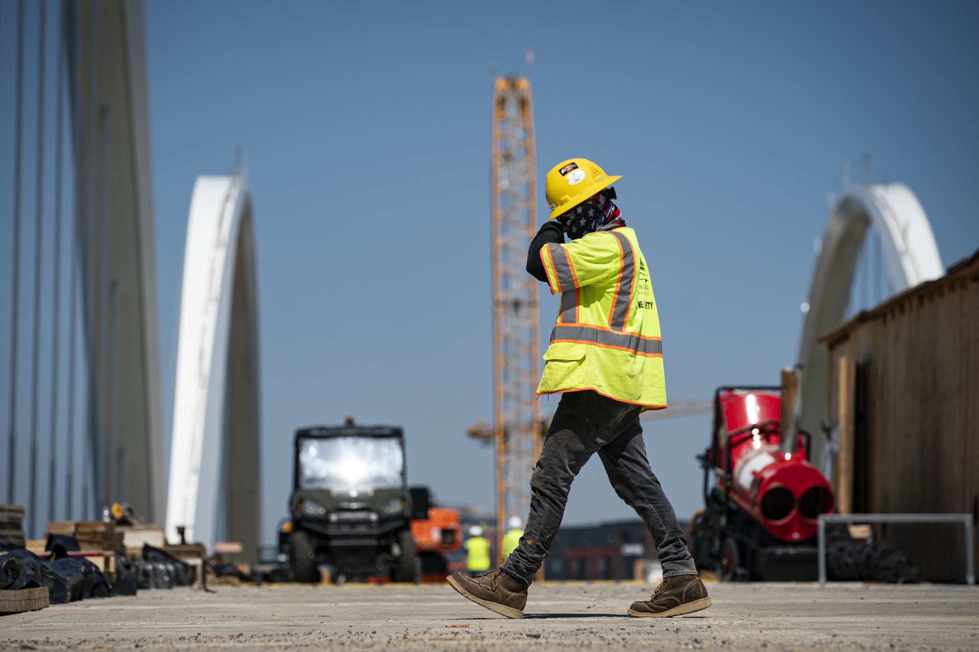 在华盛顿特区的弗雷德里克·道格拉斯纪念桥上的一名建筑工人。