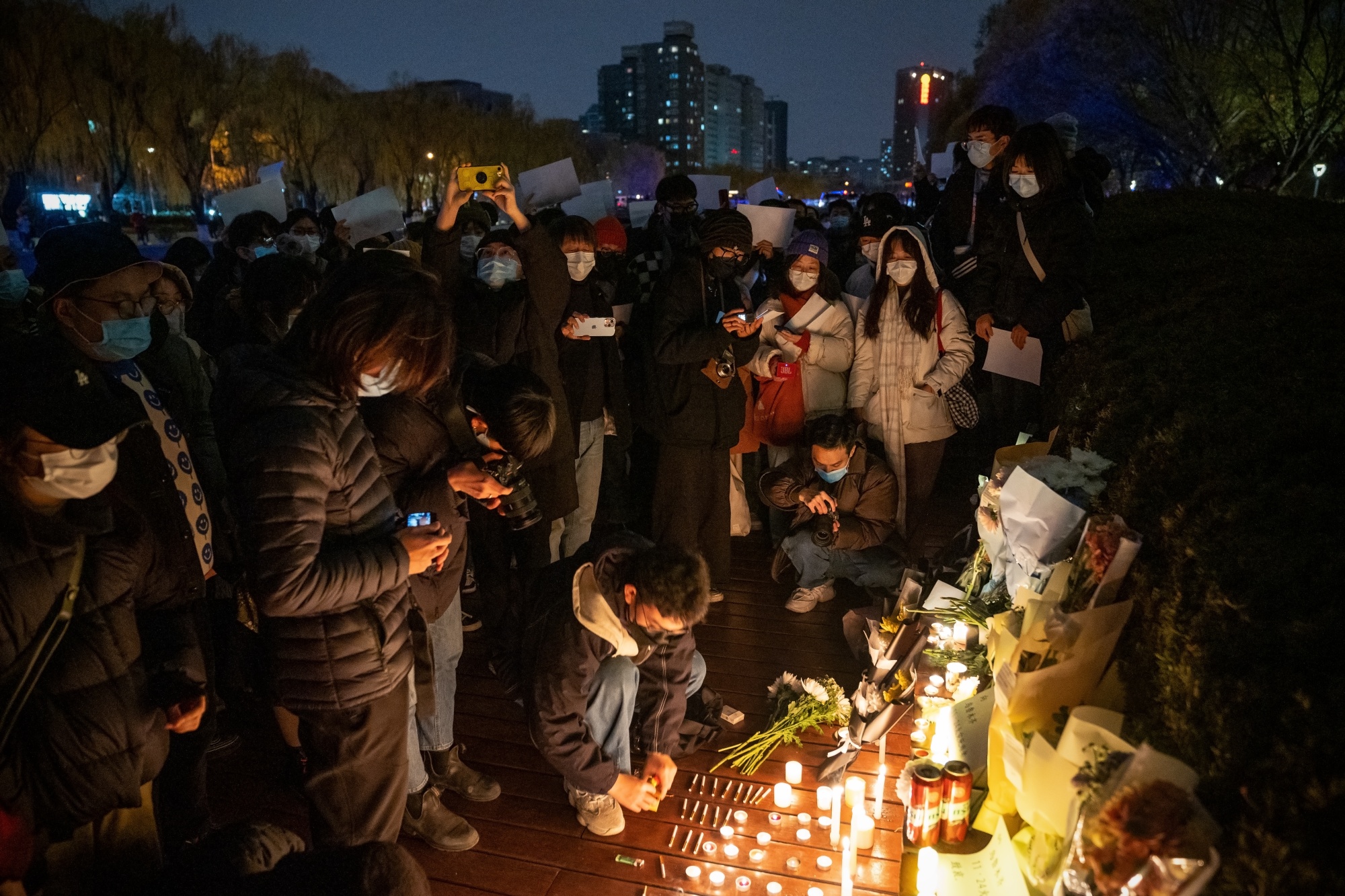 那场上海的悼念活动 — 以及全国各地举行的数十场其他集会 — 很快变得不仅仅是纪念逝者的方式。通过口口相传或社交媒体应用程序,这些应用程序的审查员不堪重负,中国公民正在利用防火墙的漏洞 — 这是中国版本的互联网,基本上与世界其他地方隔绝。一位参与其中并要求不透露身份的上海40多岁女性说:“这一切都像是一个梦。我从未想过我会在中国看到这种情况发生。”
