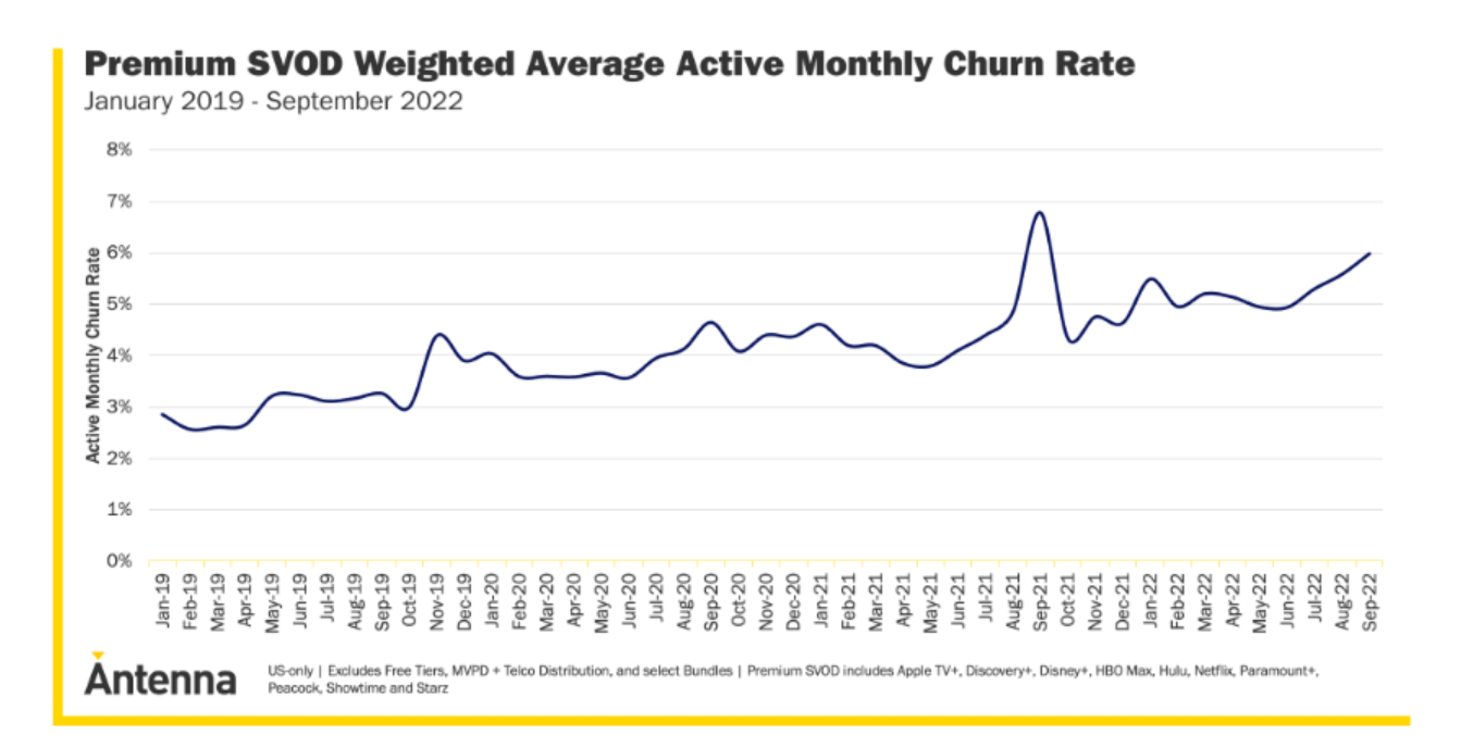 根据研究公司Antenna的数据,9月份取消流媒体订阅的人数和比例达到了新高。接近6%的所有客户取消了他们的服务。这几乎是2019年的两倍。