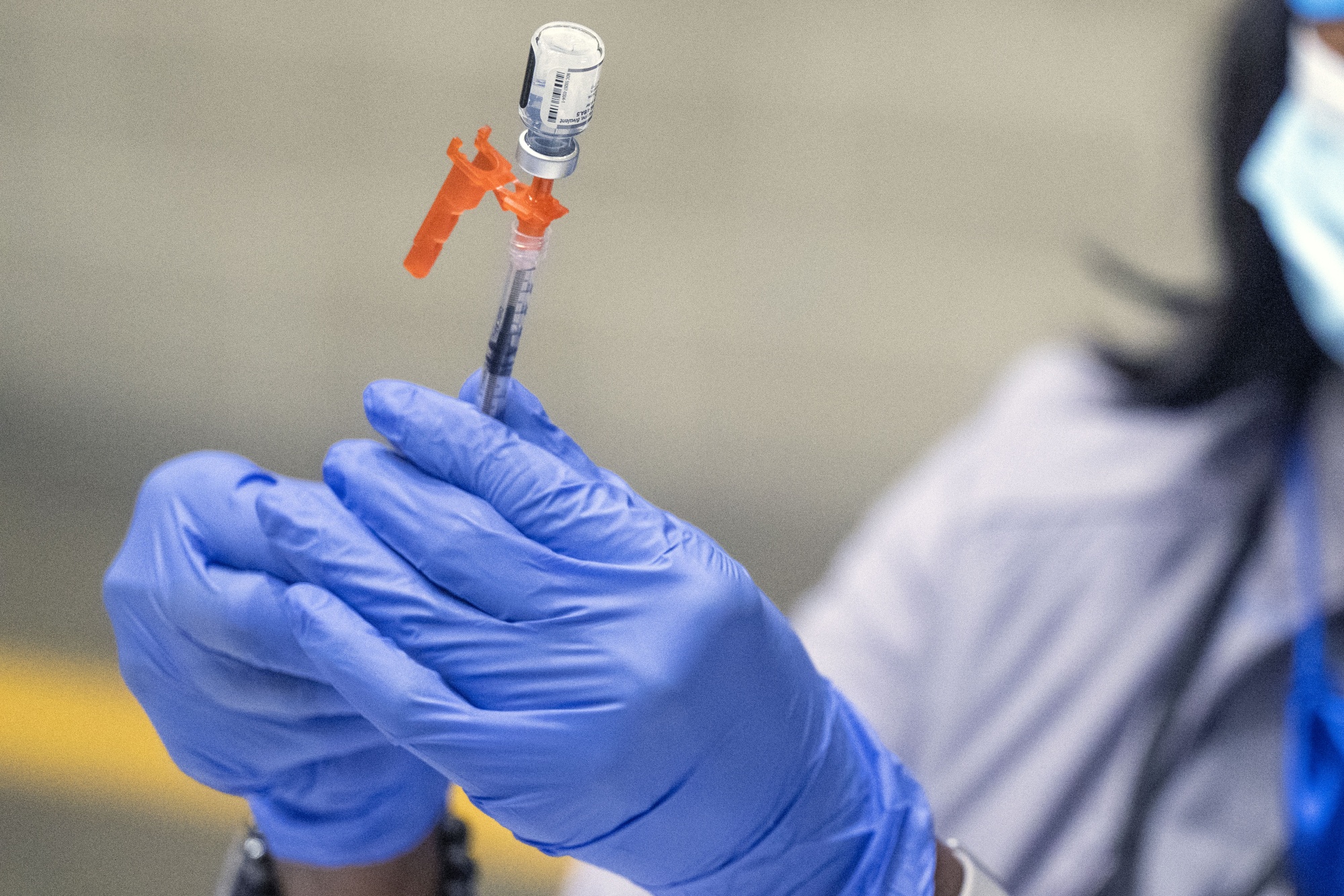 一名护士在2022年12月2日在洛杉矶准备新冠疫苗加强针。
