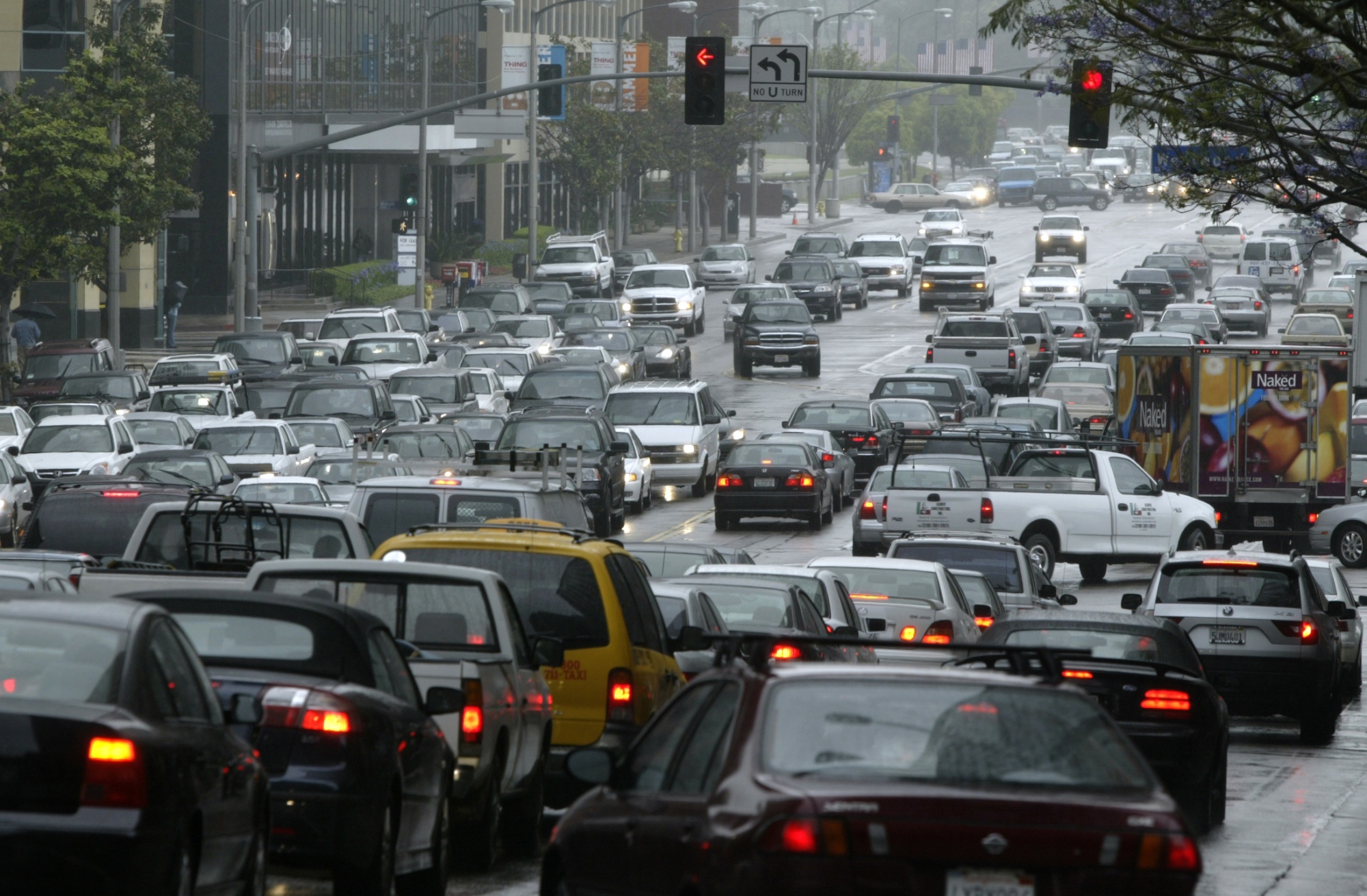 一个美国的“大路”在行动:洛杉矶的威尔希尔大道。