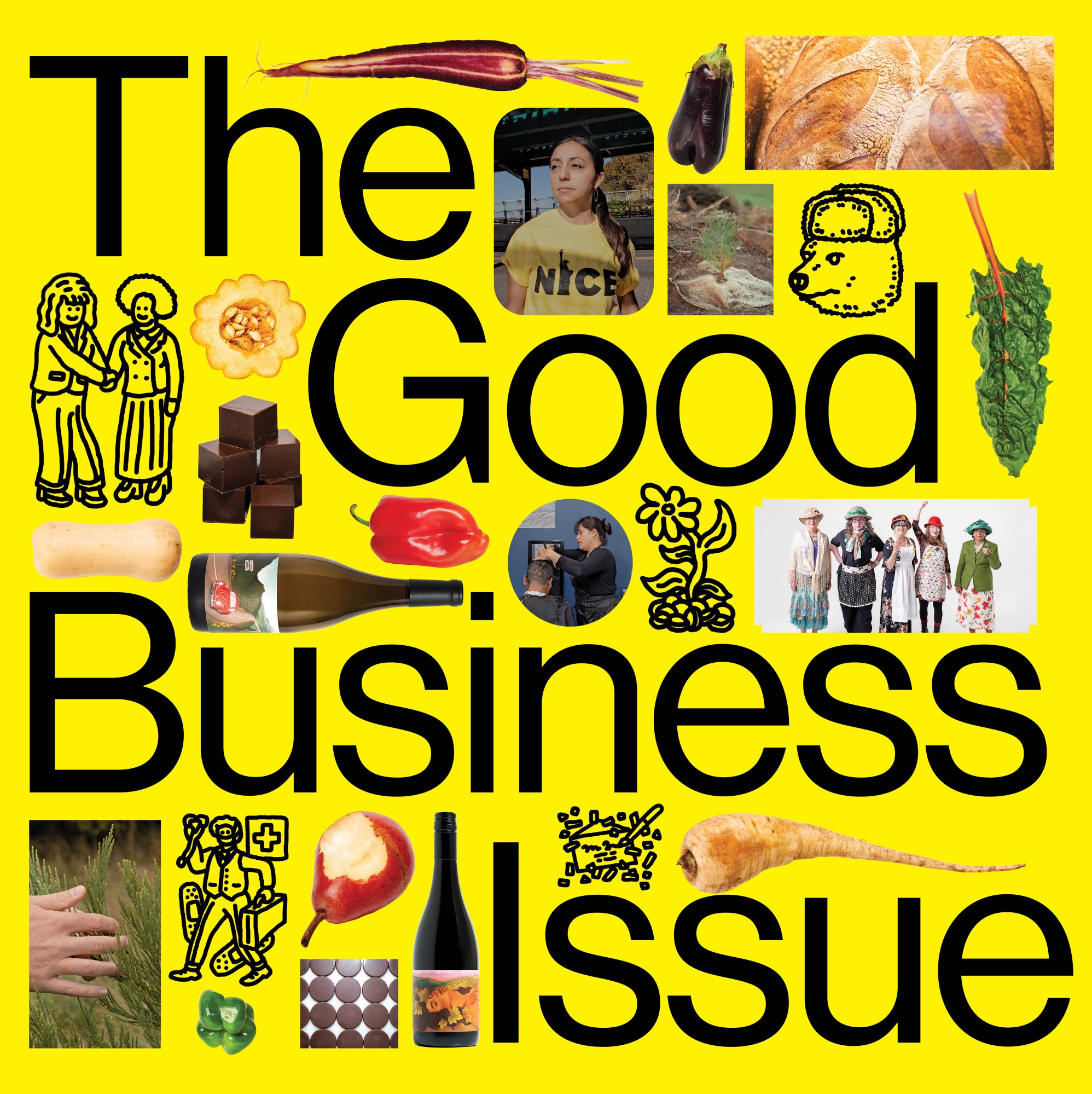 “这周是我们的年度好商业问题!”“嗯。”“这就是你的全部反应?”“你正击中我存在危机的太阳神经丛。在ESG怀疑、SBF、Twitter上的火焰之下,很难相信有好的商业……”“振作起来!世界上仍然有很多好事。”“说说看—我需要一大剂积极性。”“嗯,这期关注那些解决食物浪费、森林砍伐问题的公司—”“好的。视角稍微有所提升。”“我们报道了一些试图帮助移民的团体—”“血清素水平上升。”“还有……巧克力!”“埋藏重点!就像我的灵魂里有一道彩虹!”“你觉得能把这个转化成封面吗?”