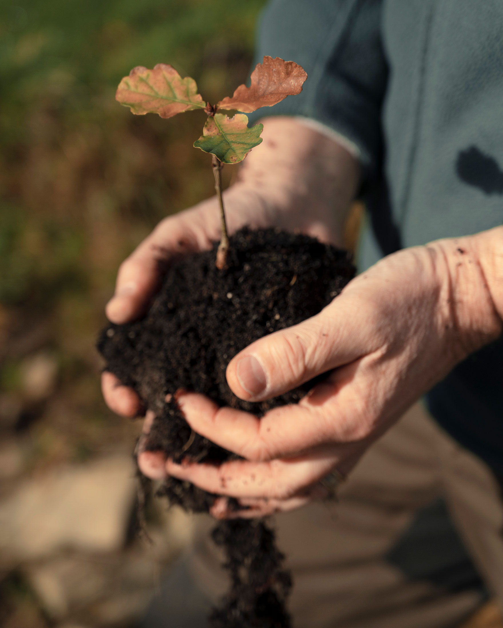 碳社区地块上分布的树木中大约四分之一用于研究。在一个占地28英亩的实验区的一个角落,英国常见的毛桦和栎树被种植在从附近成熟森林中取样的富含真菌的土壤上,这是引入的几种变量之一,以查看它们是否能够促进更快、更有弹性的生长和更大的碳储存。几百码远处是西卡云杉,原产于阿拉斯加和太平洋西北地区,它们的根部撒上了碎玄武岩。迄今为止主要在实验室中探索的理论是,这种岩石有助于加速树木周围土壤的碳吸收。总共有72个区域,种植了不同组合的树种和土壤添加剂。随着样本的生长,碳社区的工作人员、志愿者和科学家将估计树木和周围土壤中储存的碳量,以确定哪种处理组合有助于封存最多的碳。“我们在科学上有很多知识上的空白,我们需要尝试去填补,”尼科尔斯说。