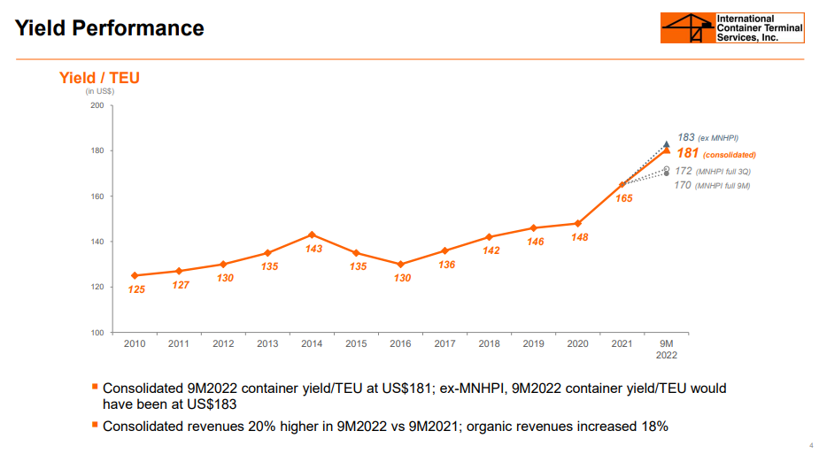 这将有助于ICTSI从每个集装箱的收益角度来看。“在某些地方,你会看到存储费用上下波动,非强制性收费,但在强制性收费方面,我认为我们基本上已经重新设定了底线,”他说。