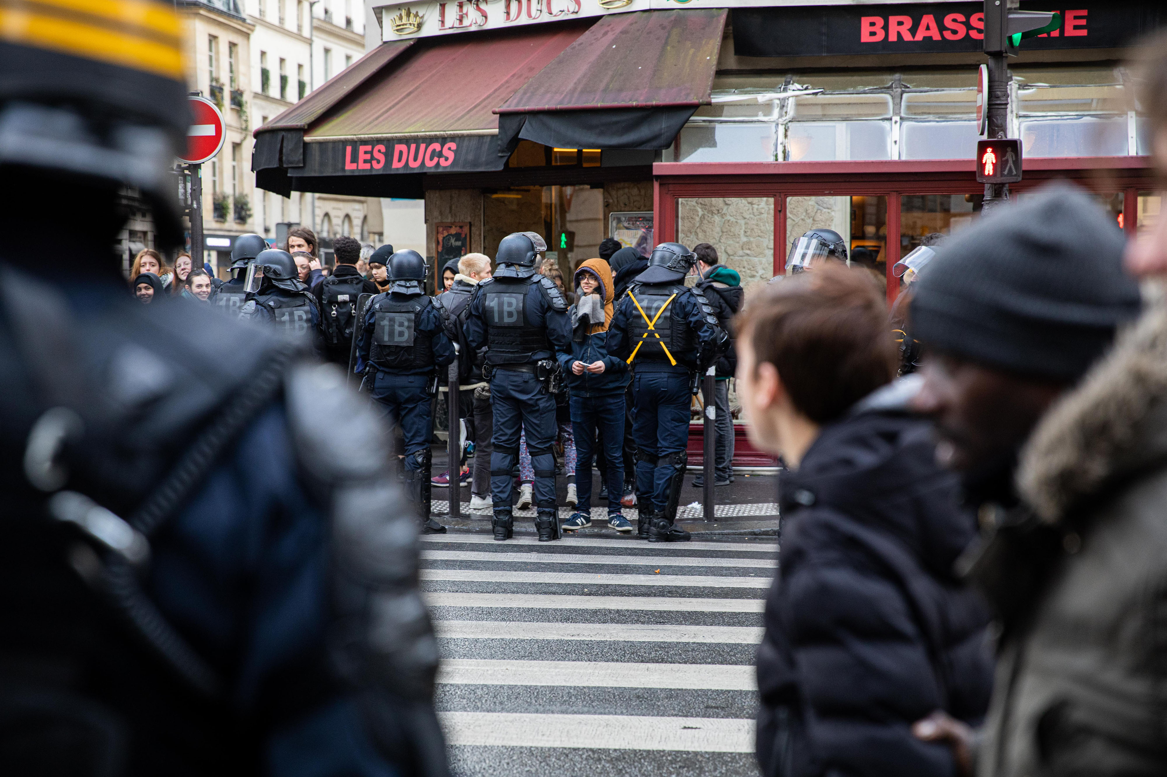 法国防暴警察在2020年2月10日星期一封锁了巴黎黑石办公室外的行人通道,此前气候活动人士在巴黎举行抗议活动。摄影师:Christophe Morin/Bloomberg2020年2月10日 — 气候抗议者在巴黎黑石办公室设立路障超过一个小时,并在其墙壁上涂鸦。法国气候青年组织声称对此负责,并表示抗议活动旨在引起人们对该公司投资涉及对环境有害公司的关注。