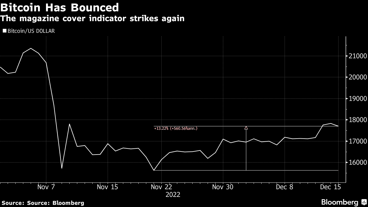 在11月19日那周的期刊上,《经济学人》的封面上有一张漂亮的照片,是犹他州(我想是犹他州)上空的流星,标题是“加密货币的崩溃”。对这个封面明显的逆向交易是做多比特币。
