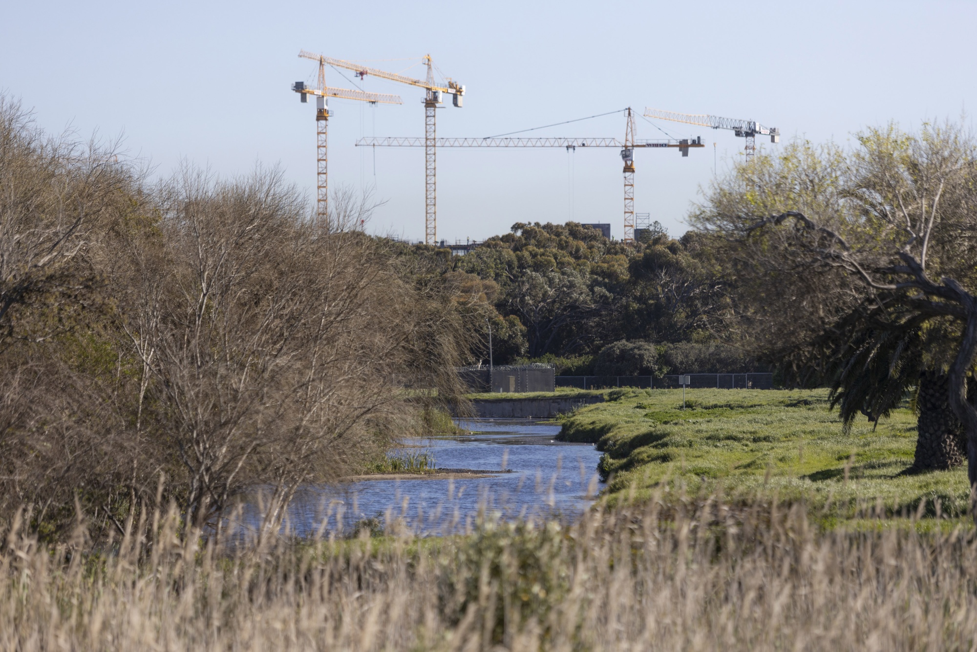 莱斯比克河之外的建筑起重机,这是科伊桑人的一个重要神圣地方。摄影师:Guillem Sartorio/Bloomberg这座城市和河谷都有复杂的历史。欧洲人在现在的开普敦定居是在15世纪,接下来的几百年里,当地人口遭受了奴隶贸易的兴起、种族隔离政策的引入以及政府限制黑人财产所有权的残酷对待。17世纪,荷兰人在莱斯比克河沿岸定居时,谷地的部分地块被分配给农民,并与科伊桑人隔绝。自那时以来,这片土地大多保持为私人土地。近年来,该地点被用作“私人高尔夫练习场、餐厅、酒吧和柏油停车场”,根据负责亚马逊项目的Liesbeek Leisure Properties Trust所述。