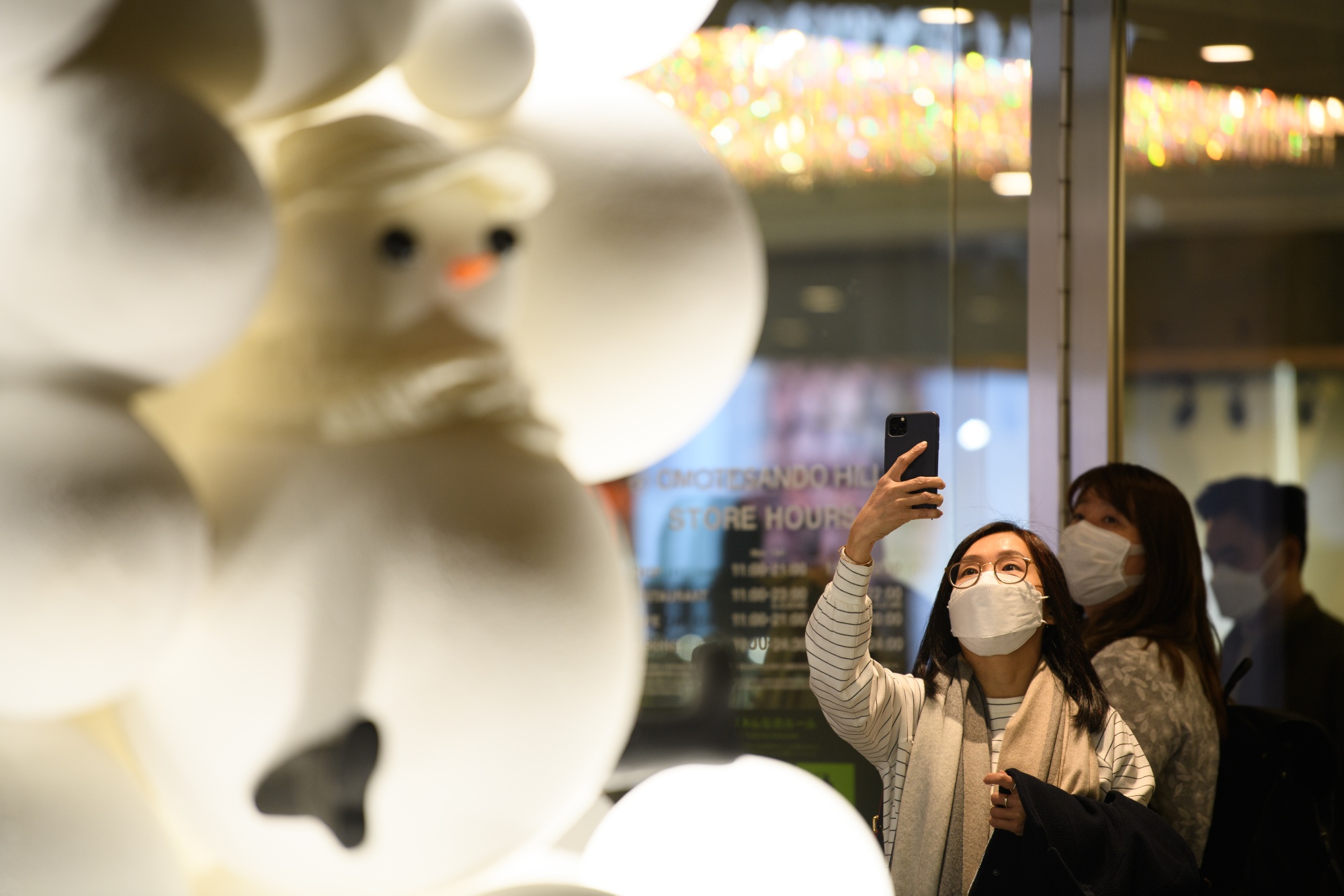 一位游客在日本东京表参道地区拍摄了一张圣诞装饰的照片,日期为12月9日星期五。