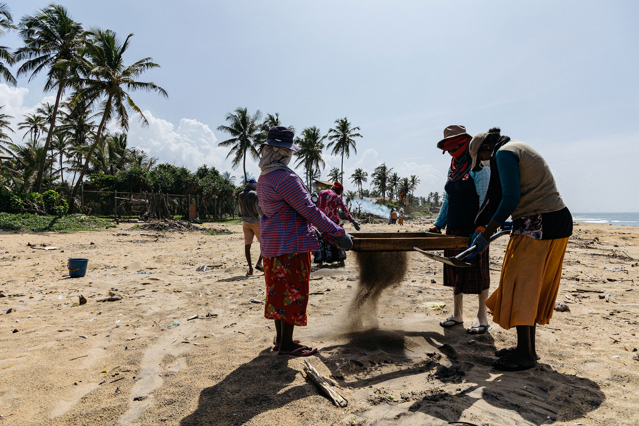 来自附近村庄的当地工人在斯里兰卡海滩上分类和收集被冲上岸的塑料。摄影师:Jonathan Wijayaratne/彭博社