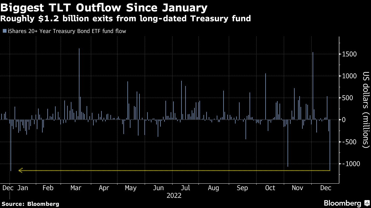 日本央行的意外举动也在全球债券市场引起了连锁反应,在周二的纽约交易中,10年期美国国债收益率迅速上涨了10个基点。投资者在决定后从价值280亿美元的iShares 20+年期国库券ETF(代号TLT)中撤出了大约12亿美元,这是该基金自1月以来最大的单日资金流出。