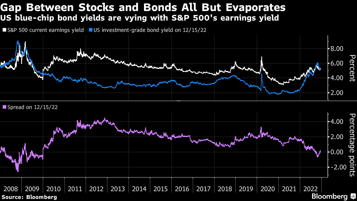 这个判断是双重的:2023年的经济衰退是华尔街的共识,许多国债期限接近4%,蓝筹公司债券接近5%。尽管经济衰退将给股票市场带来麻烦,许多人警告称明年的盈利预期仍然过高,但债券可能会受益。