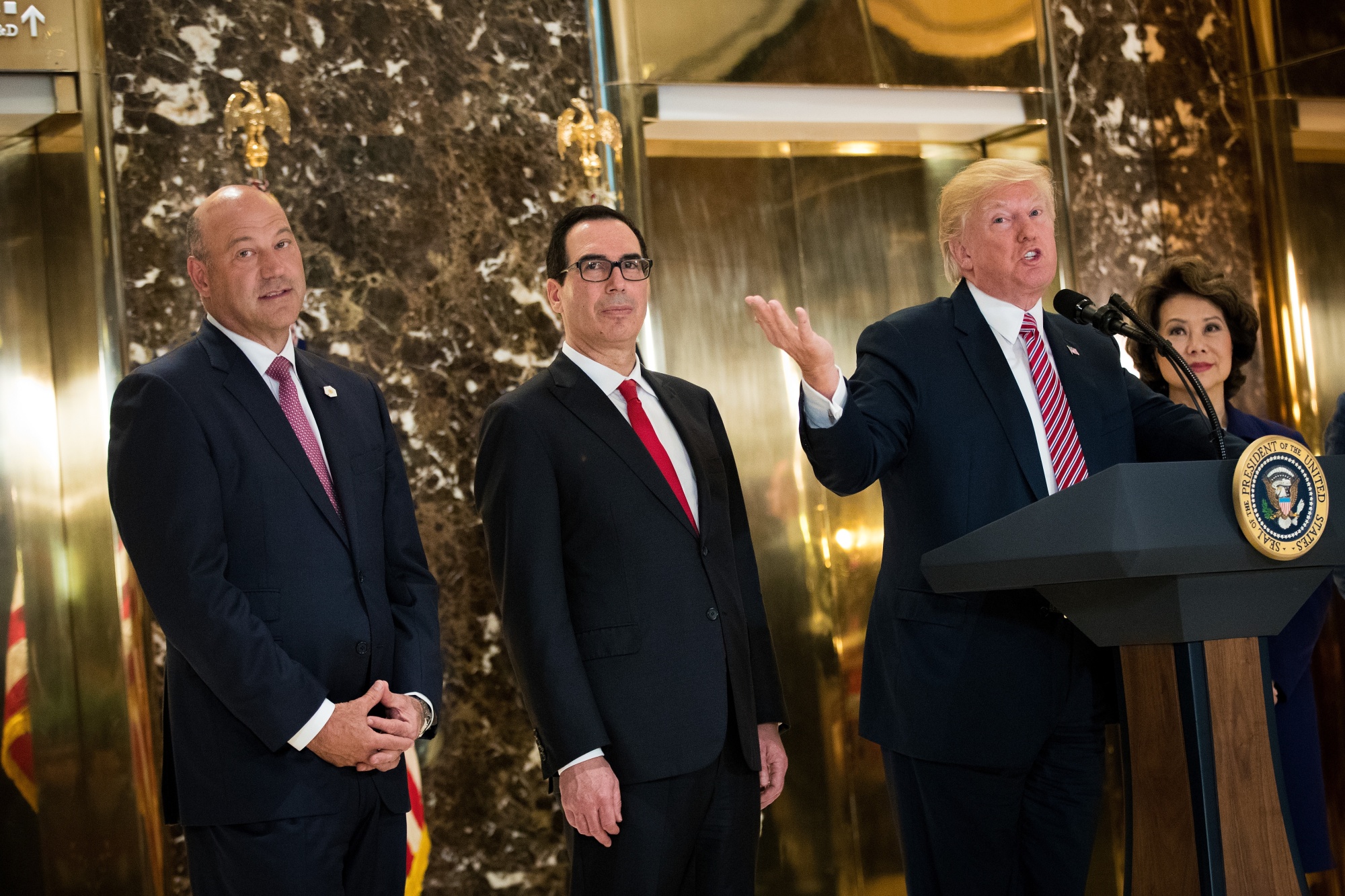 唐纳德·特朗普总统与国家经济委员会主任加里·科恩和财政部长史蒂夫·姆努钦在2017年8月的纽约特朗普大厦发表讲话。摄影师:Drew Angerer/Getty Images华尔街顶级律师H. Rodgin Cohen认为,所有这些都不应该让人感到意外。“银行可能被视为在经济中始终获胜,只有少数例外,”现任Sullivan & Cromwell LLP的高级主席科恩说。“他们是中间人。他们在借贷。”