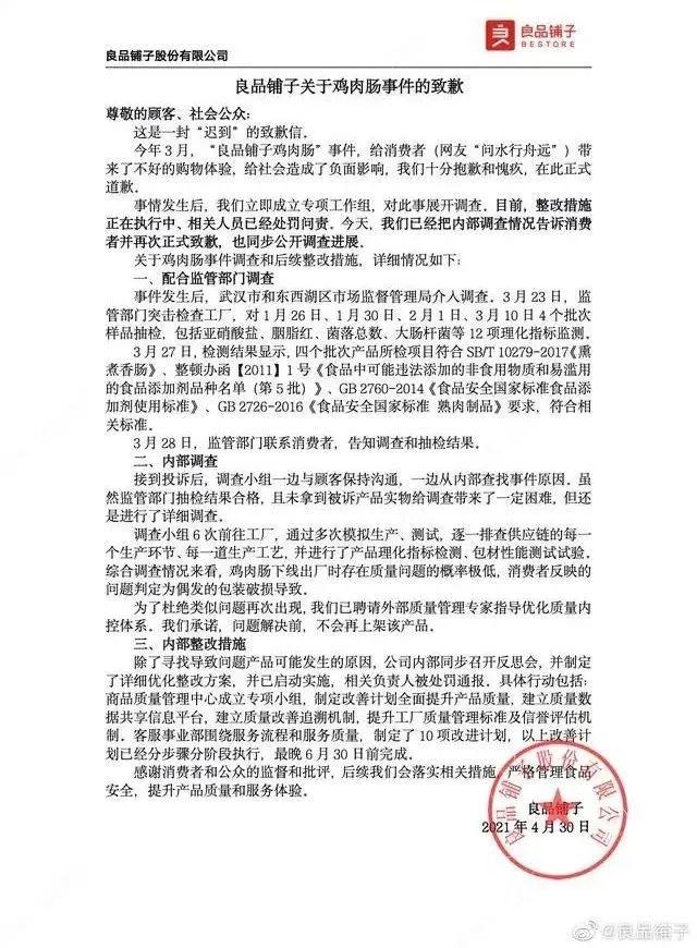 2021年3·15刚过,良品铺子就因“鸡肉肠生蛆”事件登上微博热搜,虽然公司在事后采取了调查、道歉、全渠道下架涉事产品等措施,但此后有关其食品卫生安全的话题仍屡屡被曝出。