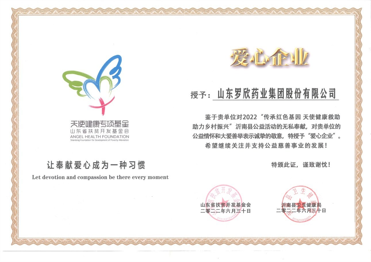 上海2022年6月30日 /美通社/ -- 6月30日,由山东省卫健委指导的2022“天使健康救助,助力乡村振兴”大型公益系列活动走进革命老区沂南活动在临沂市沂南县会议中心顺利召开。此次活动以“健康走基层,为民办实事”为主题,举办公益救助病种现场筛查、名老中医现场义诊,“天使之翼”沂南儿童健康促进工程暨儿科急危重症基层医生培训巡讲项目启动和培训基地揭牌,共建沂南“无结核病社区”,沂南青少年脊柱侧弯防治基地,“天使健康专项基金”爱心报名点落户沂南揭牌,捐赠爱心防疫物资等系列公益活动,旨在全面实施乡村振兴战略,用实际行动为人民提供全方位全周期健康服务。作为勇担社会责任的医药企业,罗欣药业始终与国家需要和人民健康同频共振,助力推动“健康中国”发展。此次公益活动,罗欣药业积极参与爱心防疫物资捐赠项目,向山东省扶贫开发基金会·天使健康专项基金捐赠总价值近15万元的儿童专用医药物资 -- 盐酸氨溴索喷雾剂(商品名:罗润畅®),用于儿童患者治疗,守护儿童患者安全。
