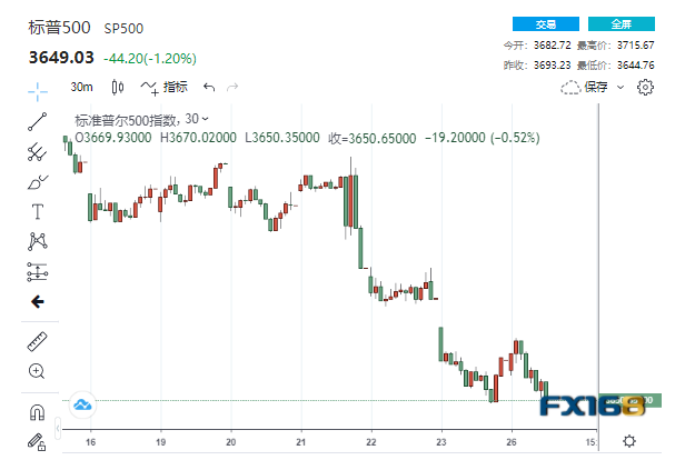 交易员正在关注标普500指数是否跌破熊市低点。标普500指数今年6月的最低收盘点位为3666.77点。该股指上周五收于3693.23点。如该指数跌至这一水平下方可能会引发更多的市场抛售。