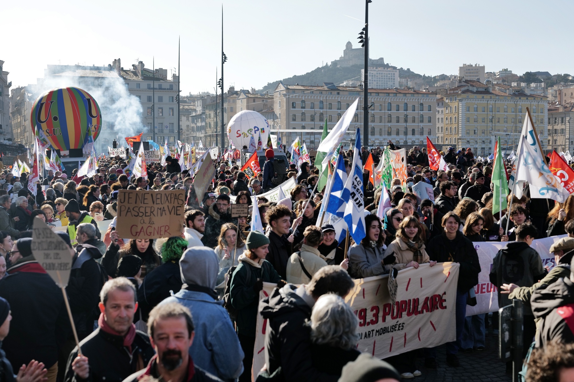 在法国马赛举行的全国大罢工示威者,日期为1月31日。来源:彭博社### 4. 抗议活动可能如何影响经济?