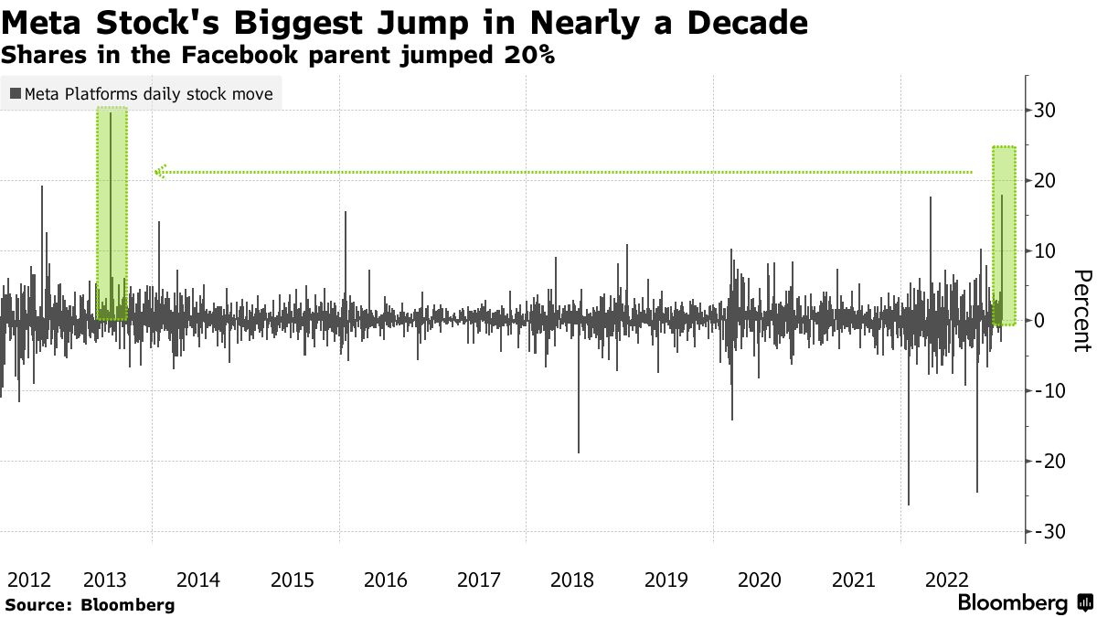 Meta股价飙升,创下2013年以来最大涨幅——彭博社