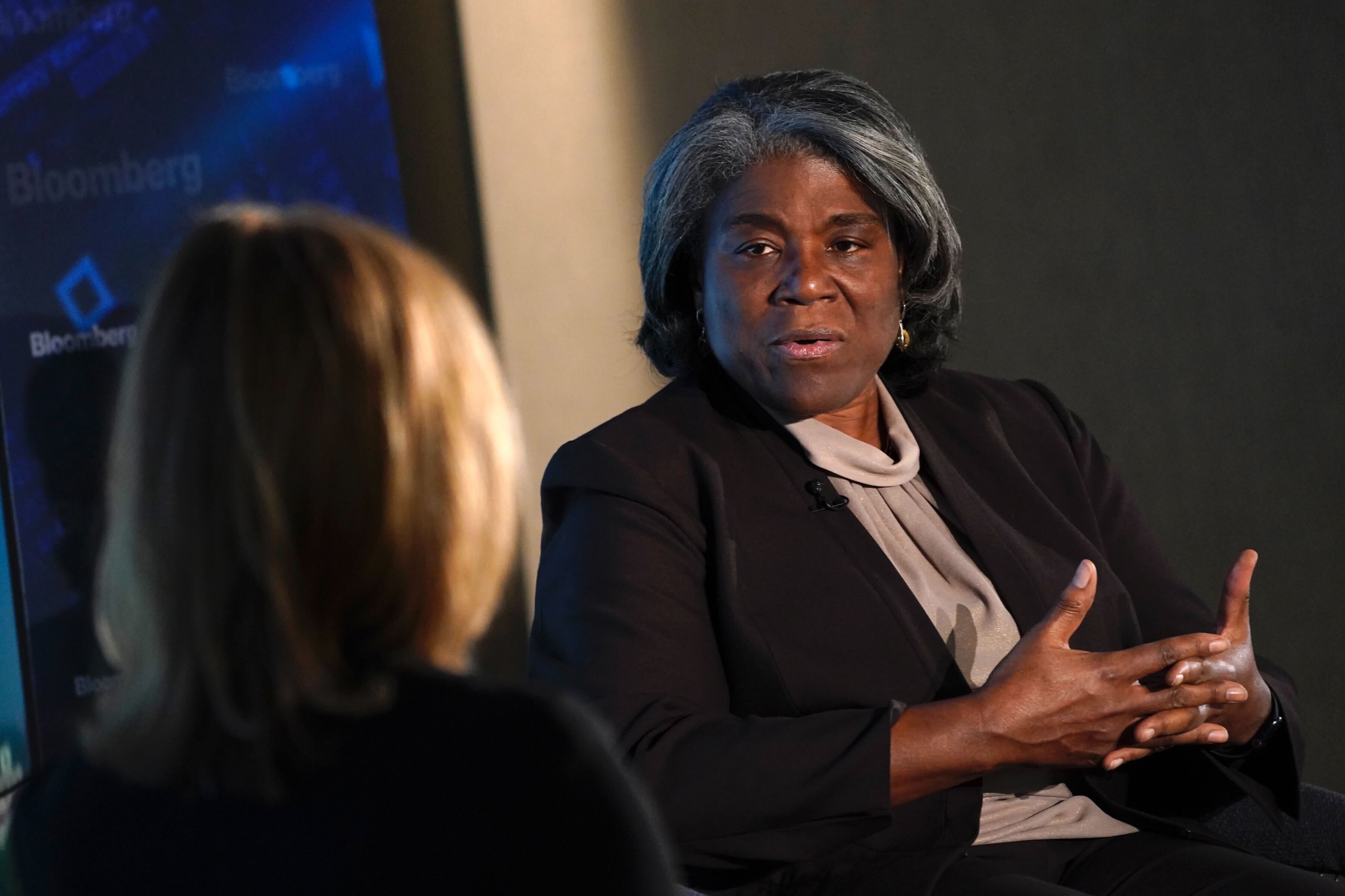 琳达·托马斯-格林菲尔德接受采访。摄影师:安德鲁·哈勒/彭博社### 美国官员表示,各国不想依赖俄罗斯武器(下午6:45)