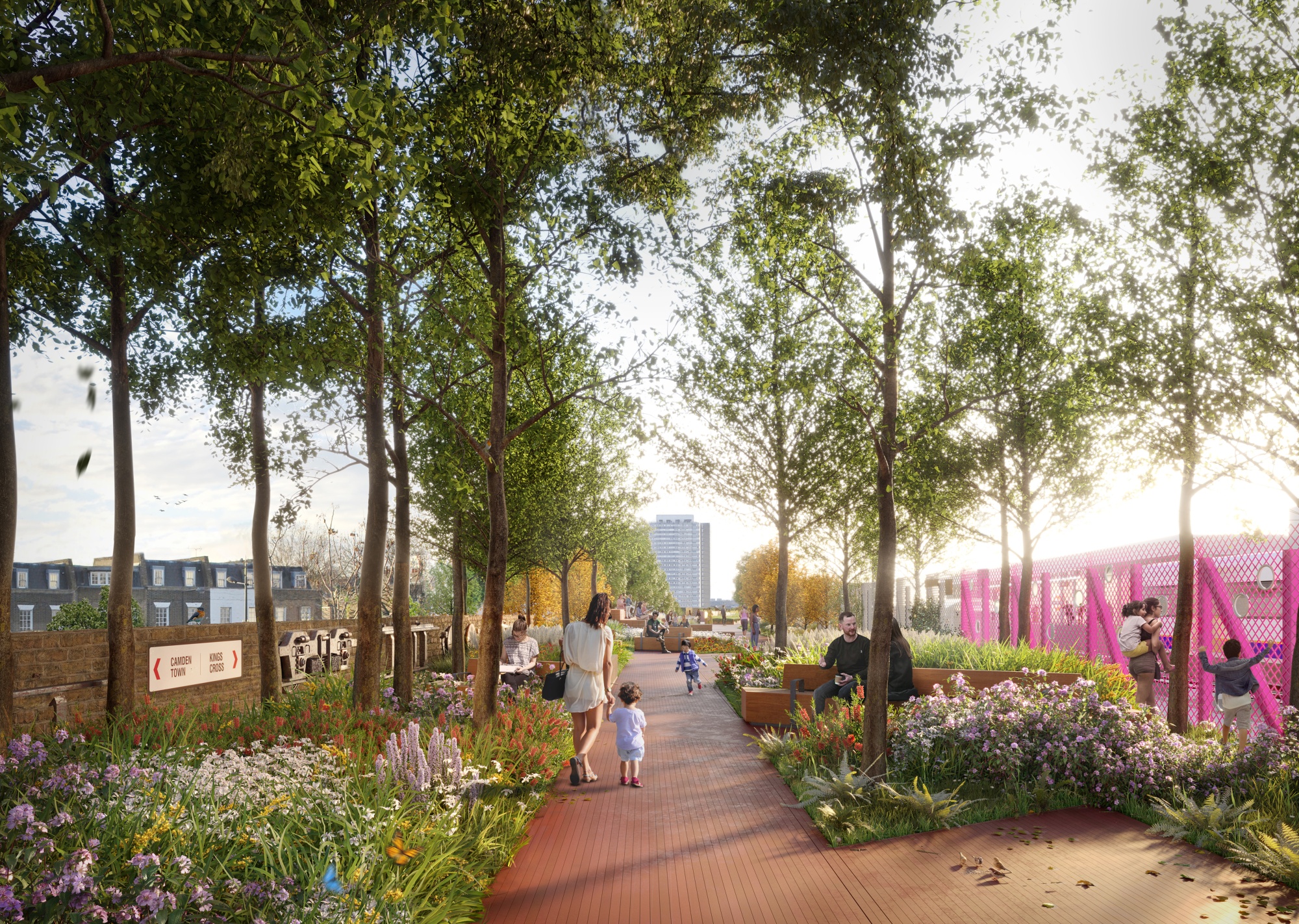 到2025年,伦敦将拥有自己的答案,类似于纽约的高线。卡姆登高线公园于今年1月获得规划批准,将与其纽约同名的模板非常接近:沿着废弃的铁路铺设的线性花园和人行道。