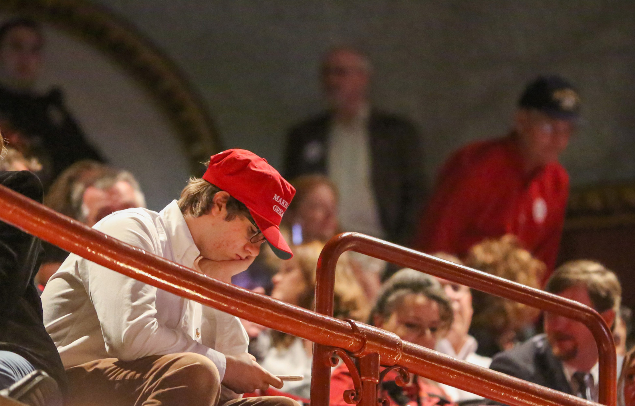 在2016年的一次集会上等待唐纳德·特朗普在北卡罗来纳州。