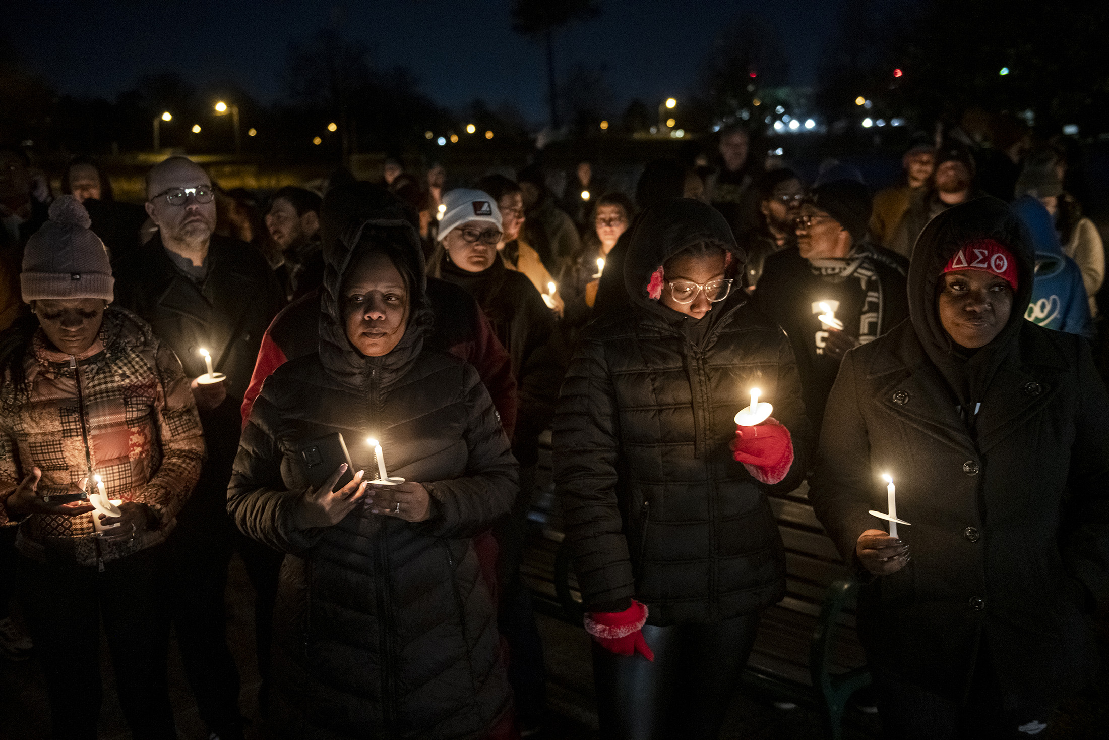 支持者们在田纳西州孟菲斯的托比滑板公园为泰尔·尼科尔斯举行烛光守夜,日期为1月26日。