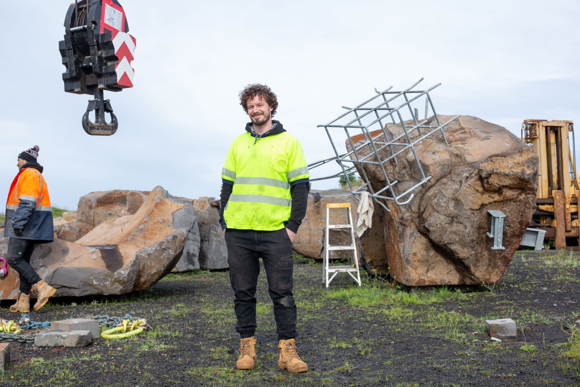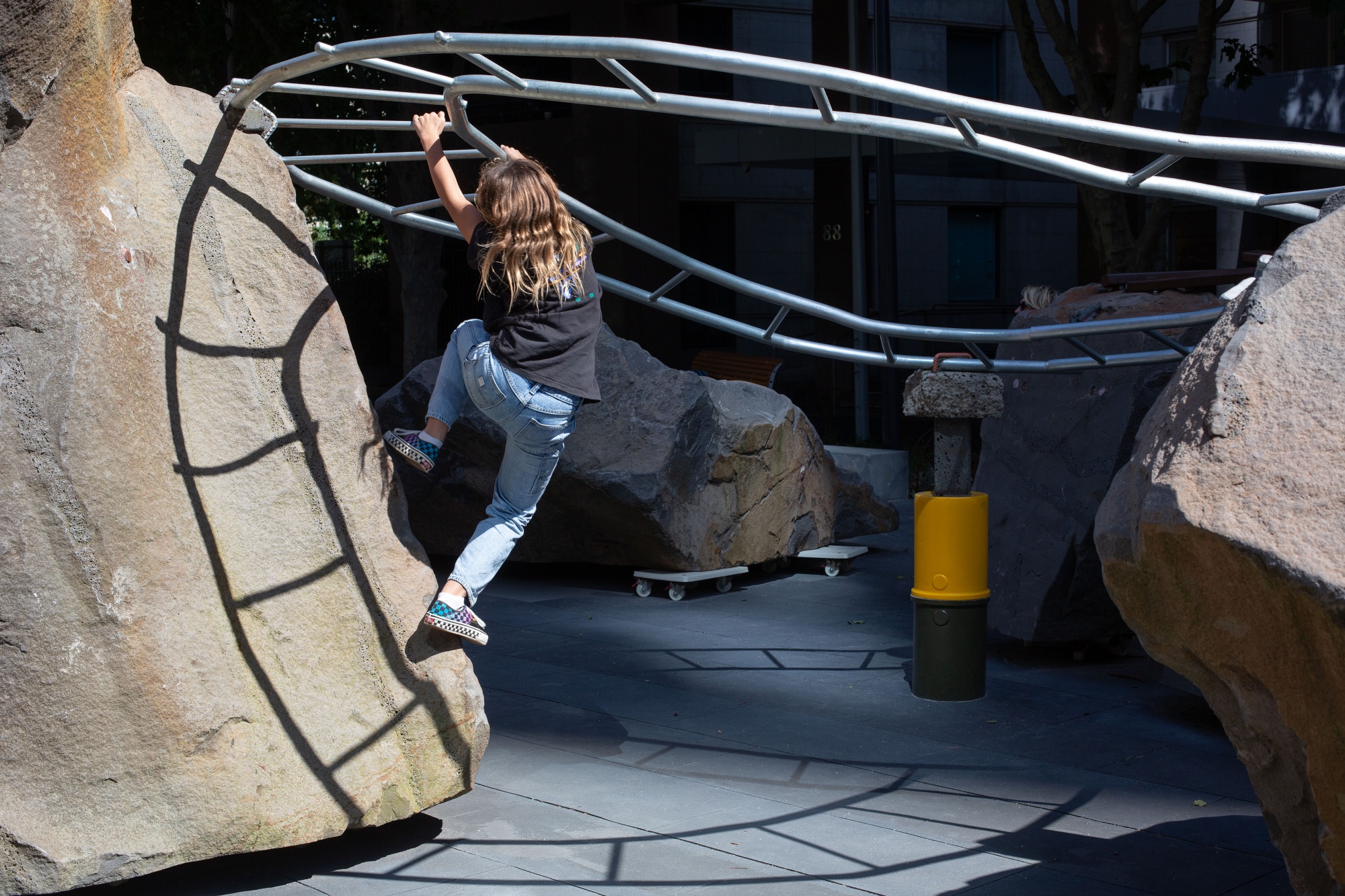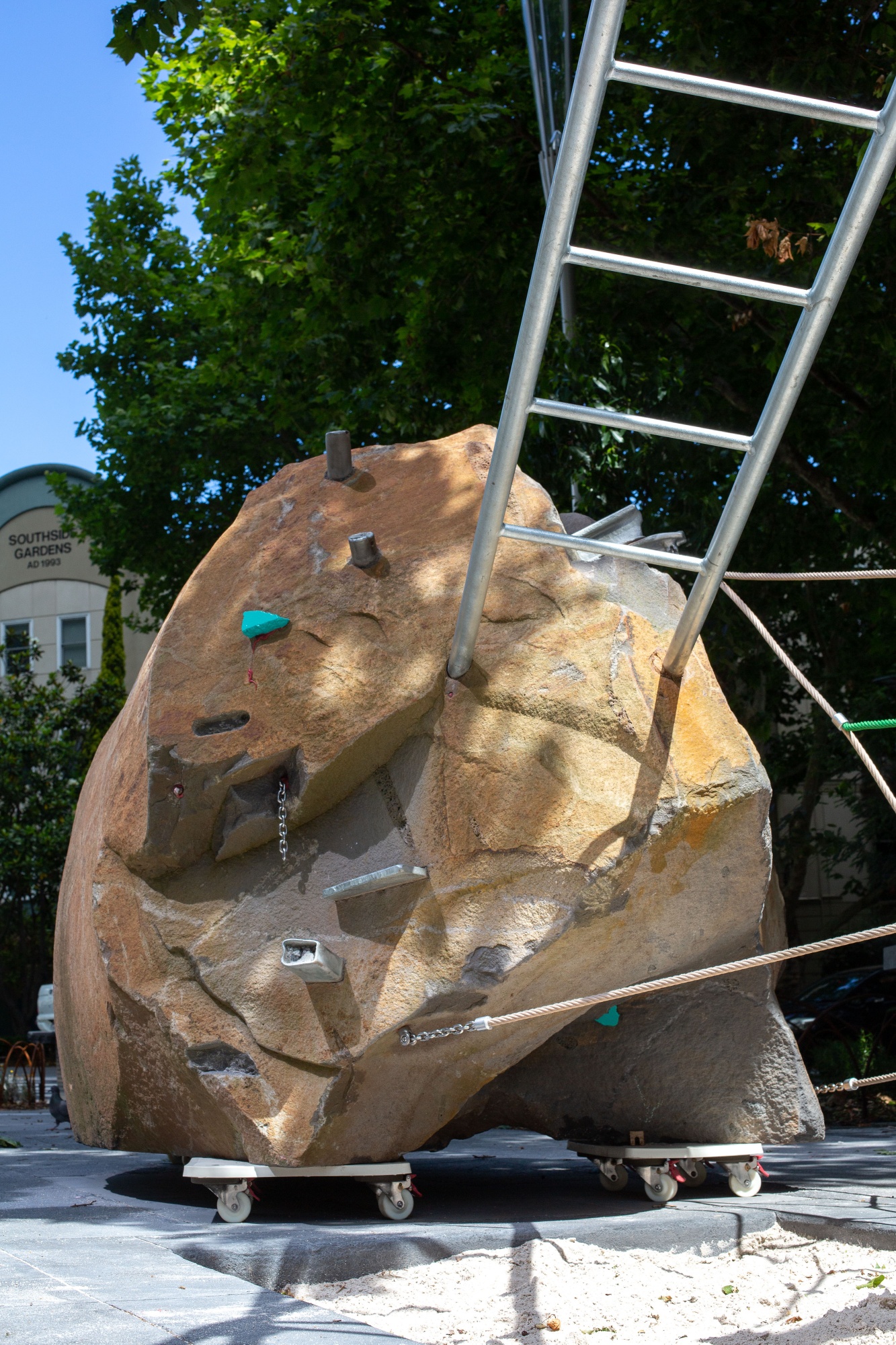 但是Hewson创造的危险大多是幻觉。这些游乐场符合澳大利亚的安全法规,而Hewson在工程方面的背景意味着,虽然结构看起来可能会分崩离析、滚动或倒塌在某人身上,但它们实际上是牢固固定的。他说:“这些小推车实际上并不是小推车,”“尽管事物看起来不稳定或被绑在一起,但实际上它们是焊接在石头上、嵌入其中或化学添加到石头上的。”