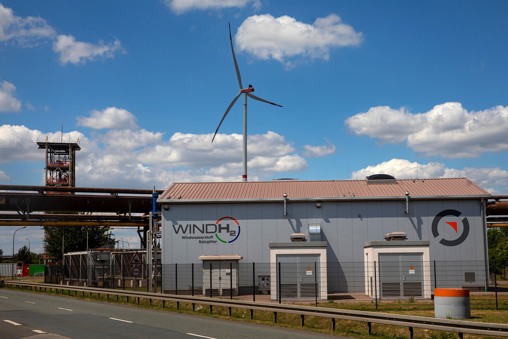 萨尔茨吉特低CO2炼钢绿色钢铁项目的一部分,包括风力涡轮机和氢气工厂。摄影师:克里斯蒂安·博奇/彭博社当然,德国并不是唯一一个争夺未来绿色经济中心的国家,竞争激烈。这在周二展示出来,当时正在与芯片生产商英特尔和TSMC就在马格德堡和德累斯顿建立新工厂进行谈判的经济部长罗伯特·哈贝克出现在一个访谈节目中,讨论了与Northvolt关于在什莱斯威-霍尔斯坦建立电动汽车电池工厂的持续谈判。