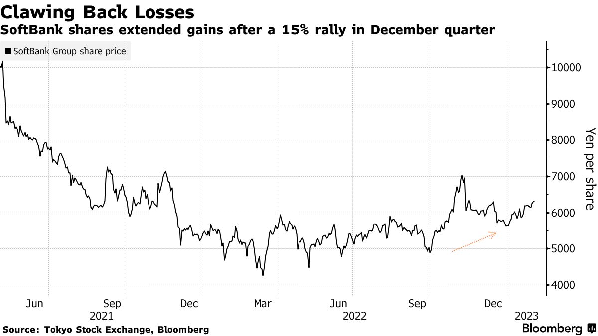 任何乐观情绪都取决于全球股市的复苏,因为牛市押注美联储加息步伐将放缓。截至上周五收盘,软银自己的股价今年上涨了12%。