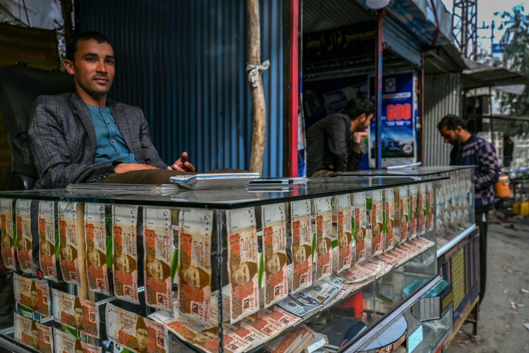 2月2日,阿富汗和巴基斯坦之间的托尔卡姆边境口岸的阿富汗纳格尔哈尔省的阿富汗货币兑换商。摄影师:Wakil Kohsar/AFP/Getty Images塔利班鼓励每个人携带任意金额的美元进入,但财政部发言人艾哈迈德·瓦利·哈克马尔表示,他们已经将允许出境的最大美元转账额度减半至5000美元。
