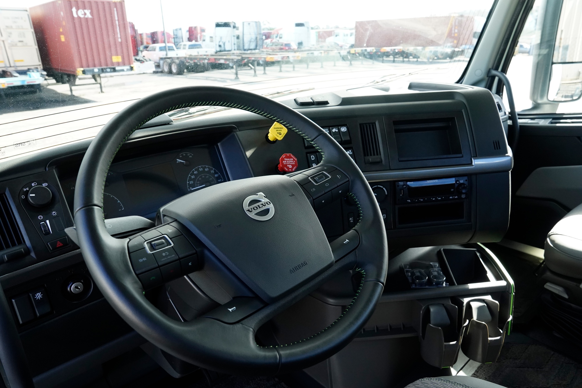 加利福尼亚州长滩的一个航运仓库里的一辆沃尔沃VNR电动卡车。