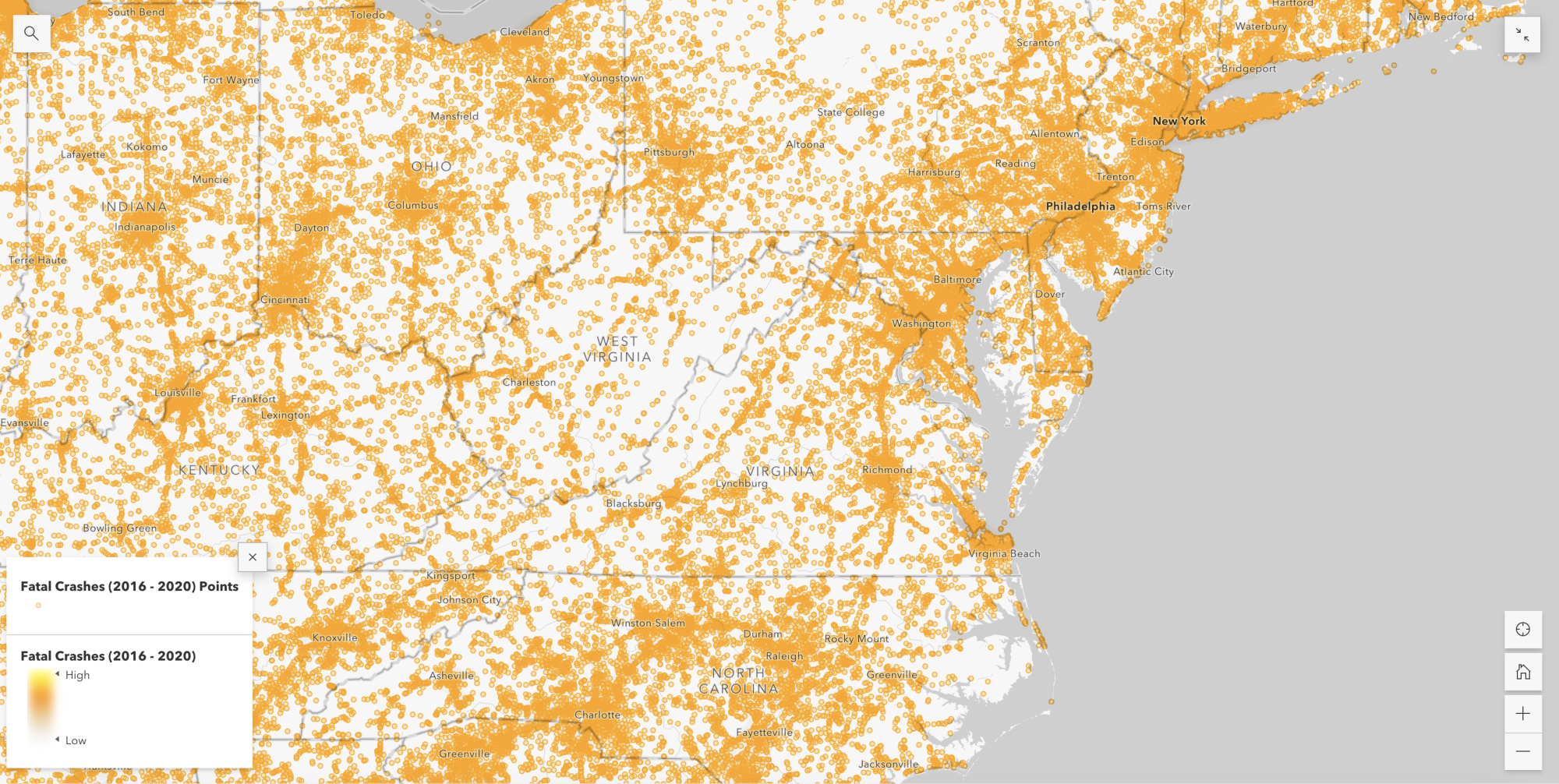 2016年至2022年美国致命车祸的可搜索地图。截图: USDOT“这证明了USDOT确实在确保那些历史上被忽视的地区有机会解决[挑战]方面非常有意图,”NSC的Chung说。