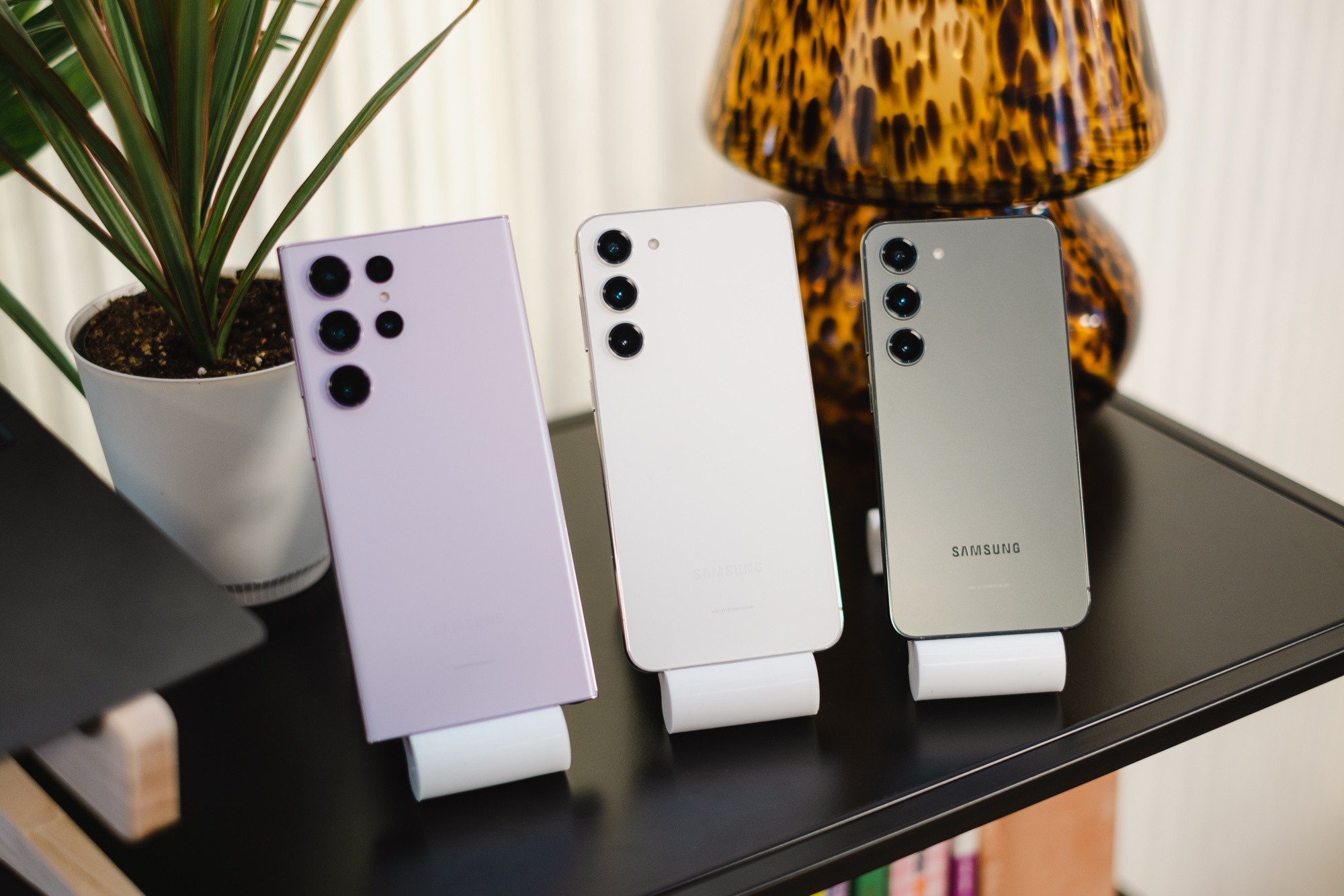 三星 Galaxy S23 Ultra、Galaxy S23+ 和 Galaxy S23 智能手机。