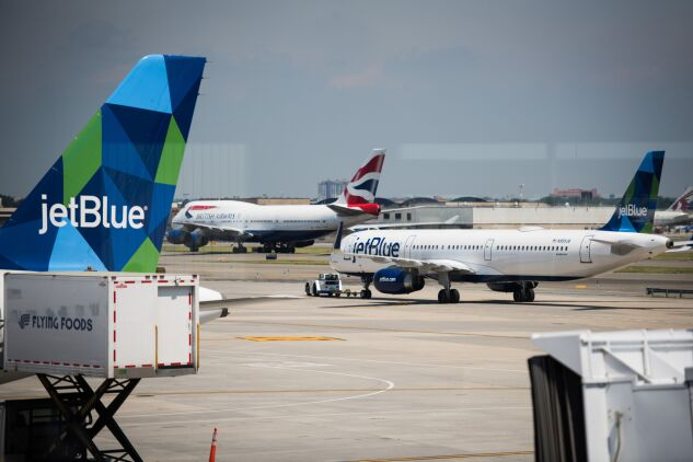 纽约约翰·肯尼迪国际机场的飞机,最近几周在跑道上发生了两起近距离事件之一。照片:马克·考兹拉里奇/彭博社议员们预计将在重新授权法案中考虑FAA及其空中交通管制员的技术升级和资金水平。