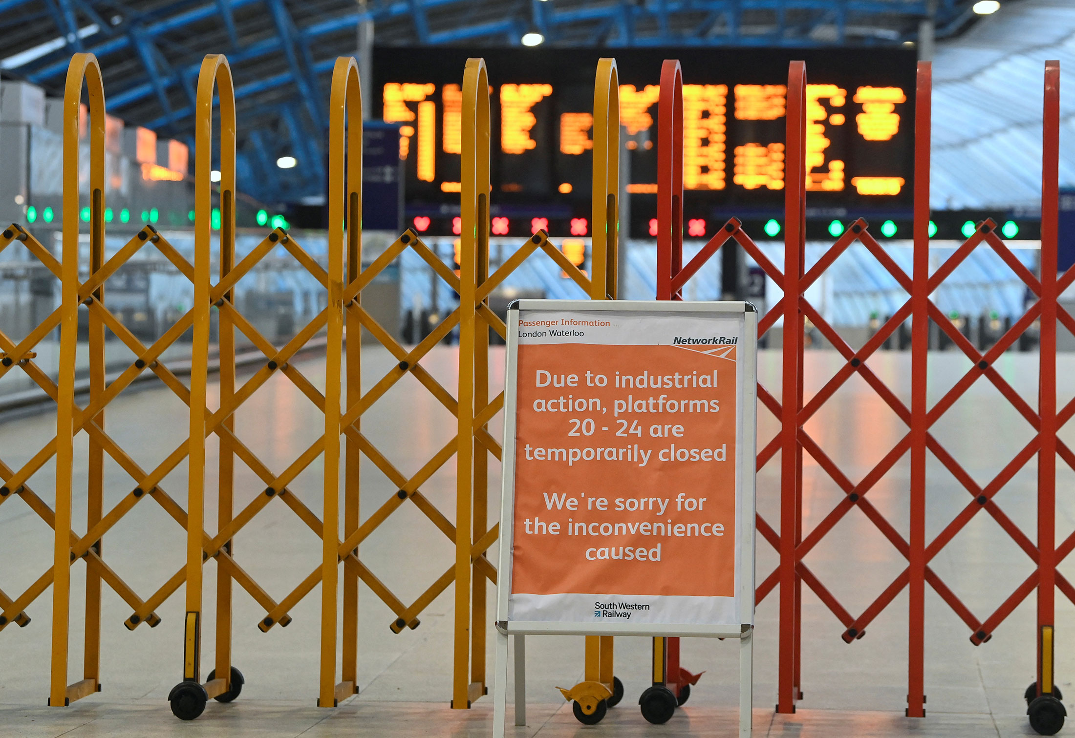 伦敦滑铁卢站的封闭平台,铁路工人于1月3日举行罢工。摄影师:托比·梅尔维尔/路透社这是首相里希·苏纳克面临的困境:保守党在十月任命前财政大臣苏纳克,以在利兹·特拉斯灾难性的首相任期后使经济重回正轨,特拉斯宣布了一系列未经资金支持的减税措施,导致英镑暴跌。苏纳克表示,在截至4月5日的当前财政年度内给数百万公共部门工作者提供与通货膨胀相匹配的加薪是“负担不起的”,并且存在干扰英国年度薪酬审查流程的风险,独立小组收集证据然后提出建议。