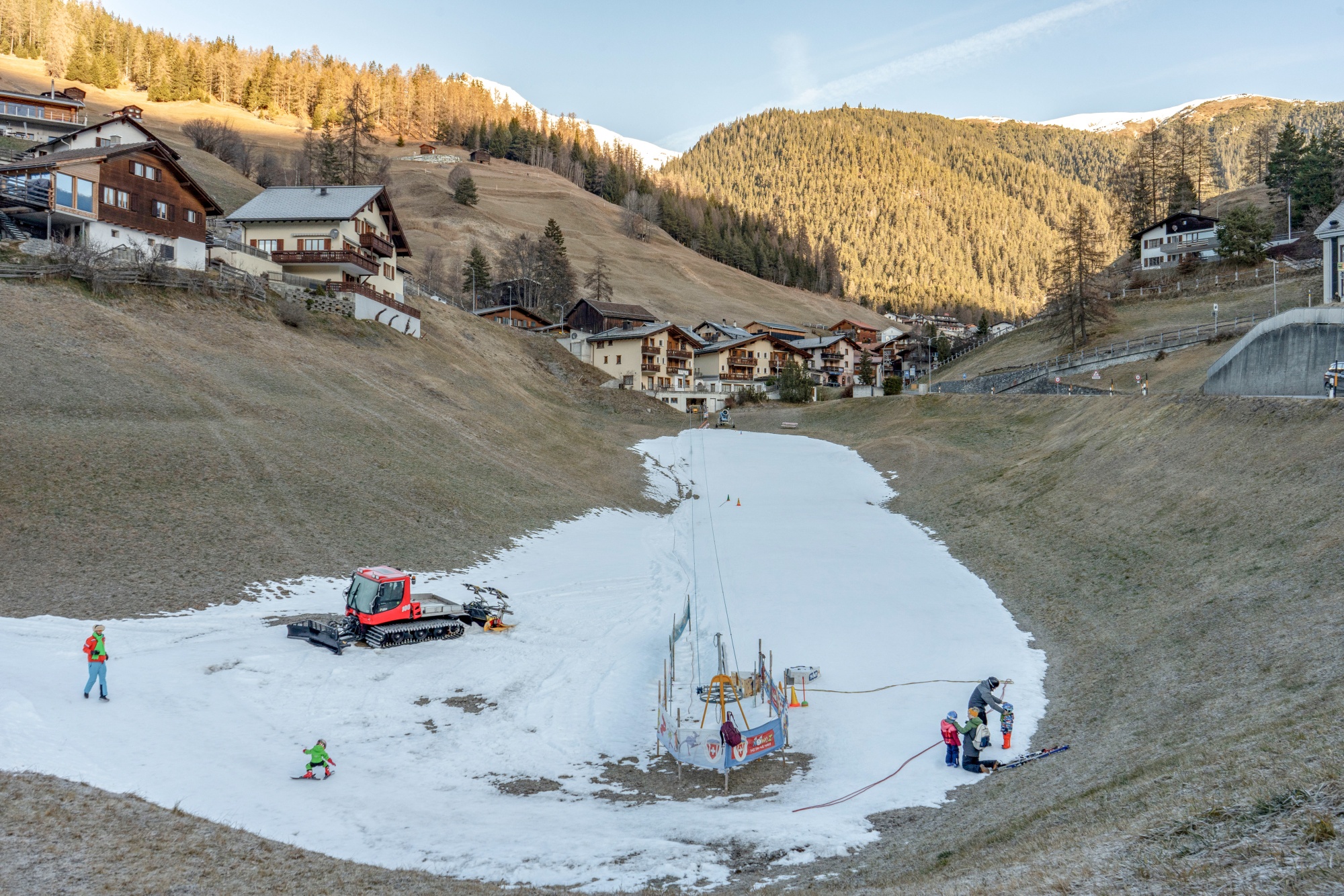 在瑞士达沃斯,一个被用作儿童训练滑雪坡的一小片雪,拍摄于2023年1月8日星期日。
