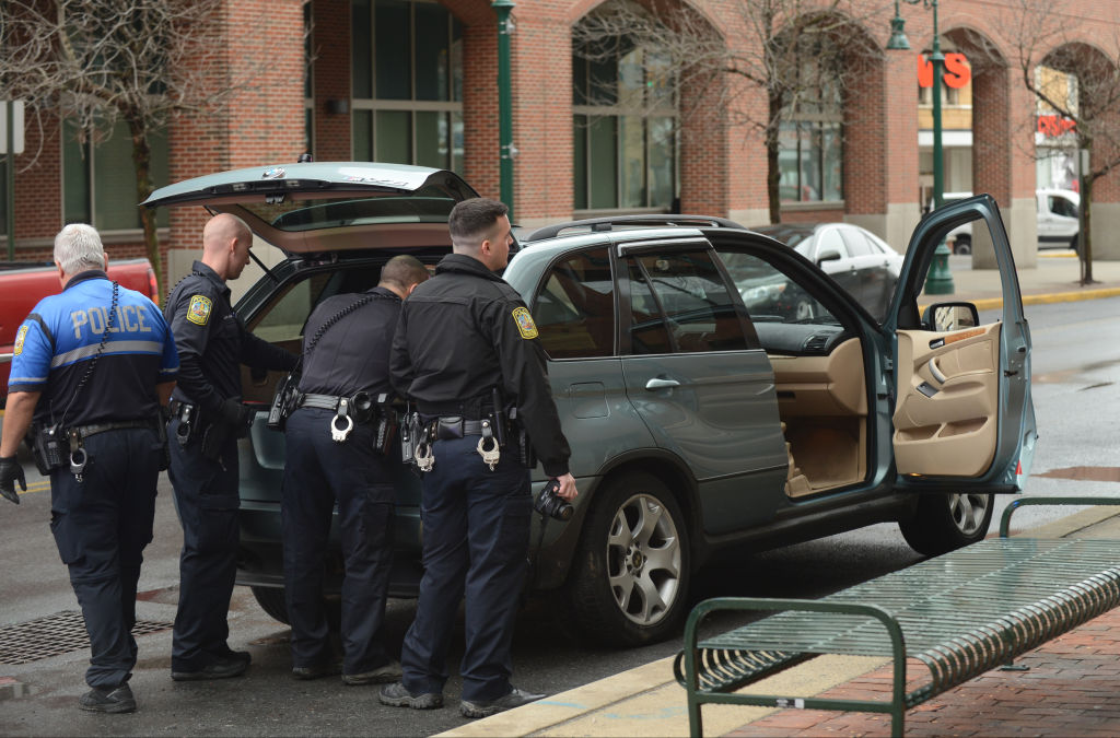 警察在交通检查中搜查车辆。国会中提出的一项法案旨在激励城市将这些检查从警察手中移出,以减少暴力后果。