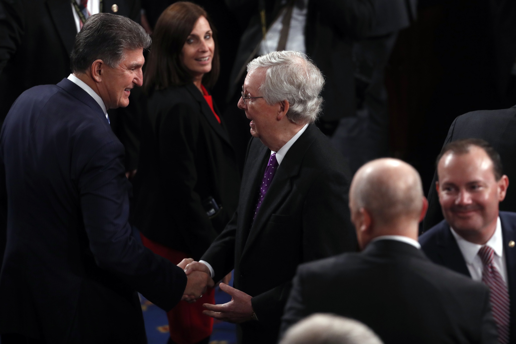 西弗吉尼亚州的乔·曼钦(Joe Manchin),左,与来自肯塔基州的现任参议院少数党领袖米奇·麦康奈尔(Mitch McConnell)在2020年的国情咨文演讲中相遇。摄影师:安德鲁·哈勒尔/彭博社西弗吉尼亚州民主党参议员乔·曼钦(Joe Manchin)(与亚利桑那州的柯尔斯滕·西内玛(Kyrsten Sinema)一起)在过去两年中经常与共和党人一起投票反对拜登的议程,表示他计划再次加入共和党,这次支持推翻养老金规定的决议。曼钦代表一个煤炭州,并且在化石燃料行业有重大利益,认为该规定危及“纯粹出于政治目的而危及1.5亿美国人的退休储蓄。”