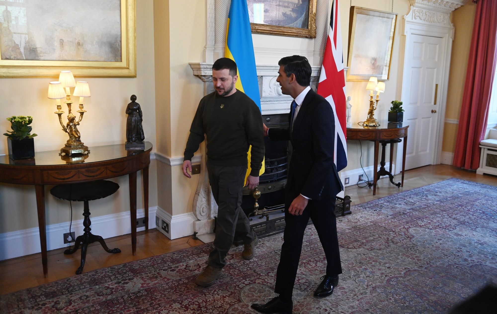 泽连斯基乘坐英国皇家空军飞机抵达伦敦后前往唐宁街与苏纳克会面,并在议会与英国议员交谈。他还将会见查尔斯三世国王,并访问在英格兰西南部接受训练的乌克兰军队。