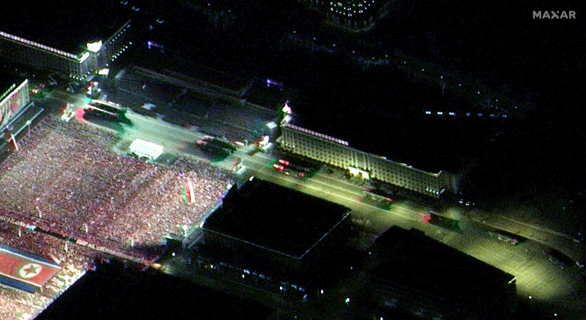 金日成广场的一次阅兵式。来源:2023年Maxar Technologies卫星图像首尔新美国安全中心的兼职高级研究员金度妍表示,领导人的女儿获得的新角色可能是为了牵制他的妹妹。