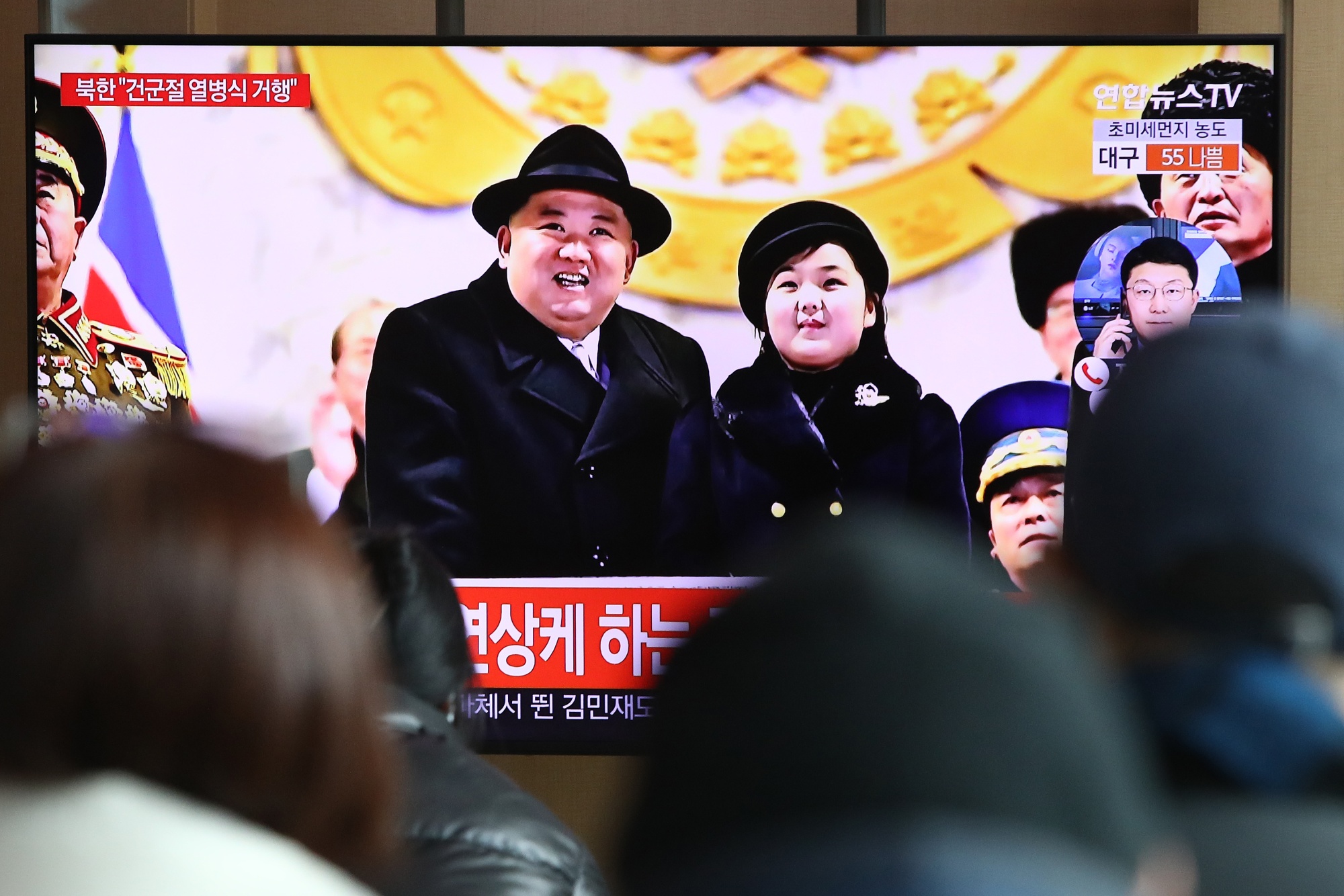一段展示金正恩和他的女儿在游行中的广播。摄影师:Chung Sung-Jun/Getty Images### 你可以使用的解释