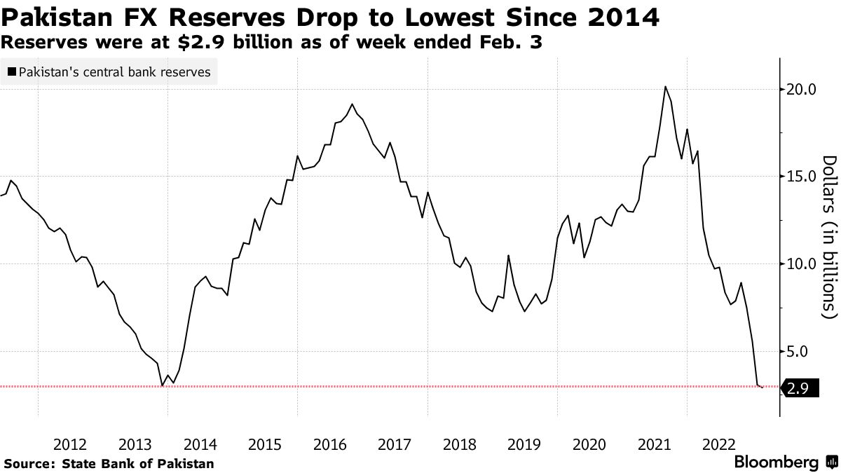 如果IMF的谈判没有取得积极的结果,“就像等待违约的情况一样,”迪拜东方资本高级顾问Emre Akcakmak在IMF声明之前表示。他补充说,鉴于当前的消耗速度,巴基斯坦的储备只够维持两个月。