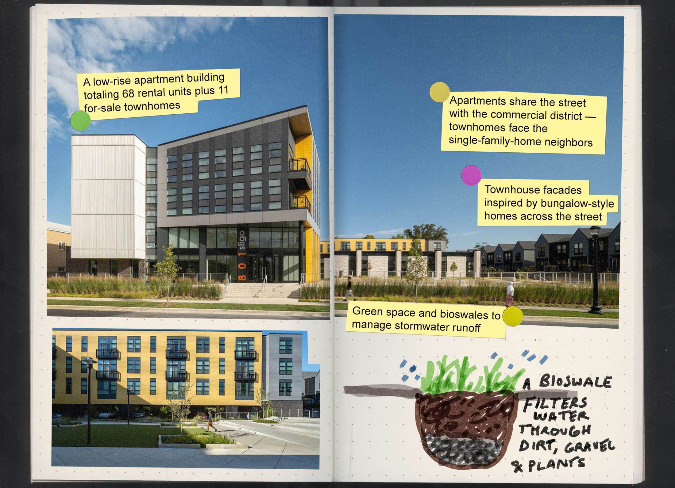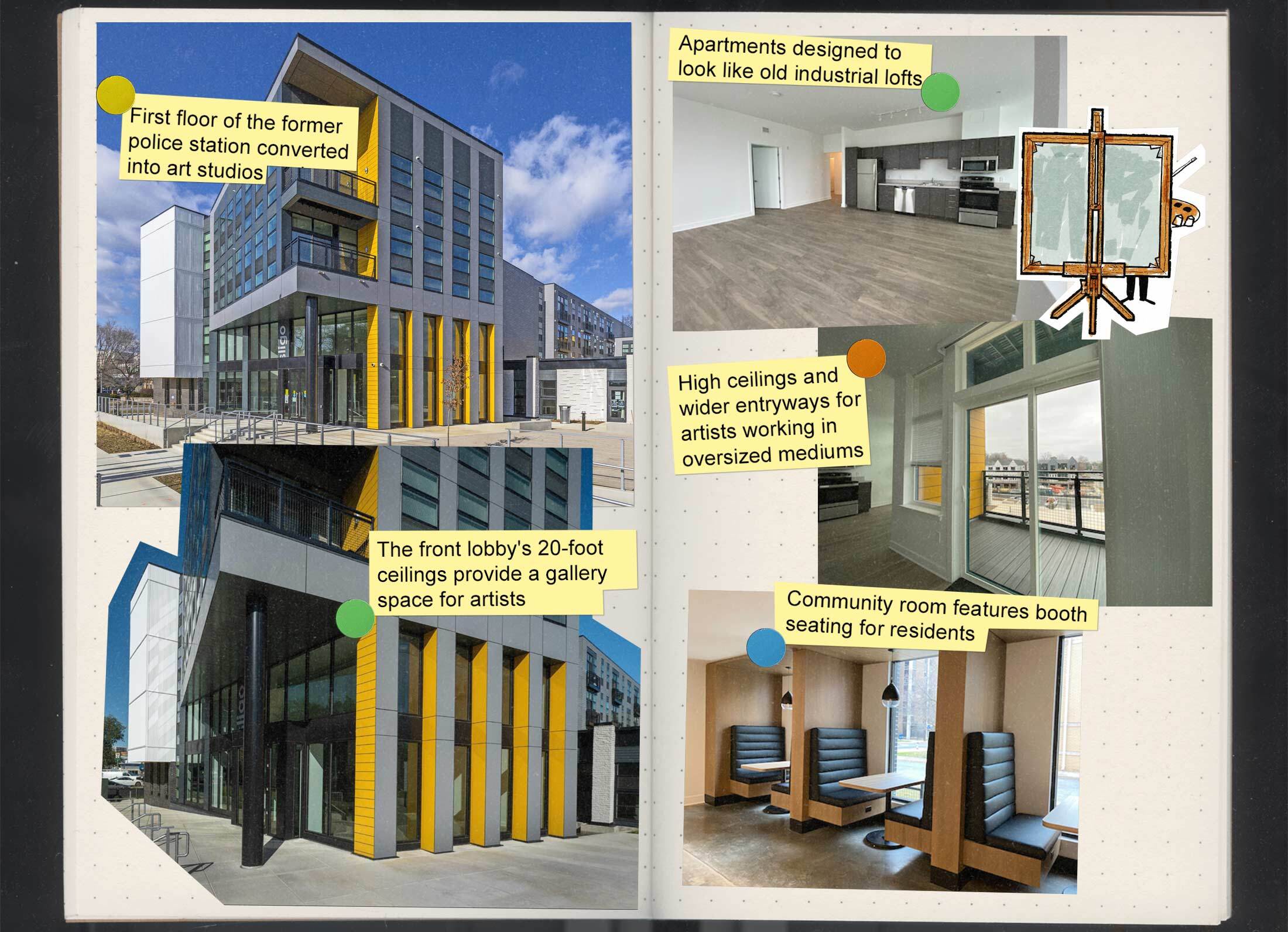 照片:BKV Group。插图:Stephanie Davidson该项目反映了在解决某一地区严重的住房短缺问题和获得社区支持之间的微妙平衡。过于听取公众意见可能会延迟增加新住房的进展,或限制它们为有需要的人提供服务的能力。现有房主的反对意见可能足以取消整个项目。艺术家住房也可以是对保障性住房的一种妥协:明尼苏达大学的一项2016年研究发现,与双子城其他类型的低收入住房相比,几个这样的开发项目的非白人租户要少得多。在其申请过程中,Artspace强调致力于吸引“来自不同艺术和文化背景的个人和家庭” — 这应该不难,考虑到银泉的种族多样性。