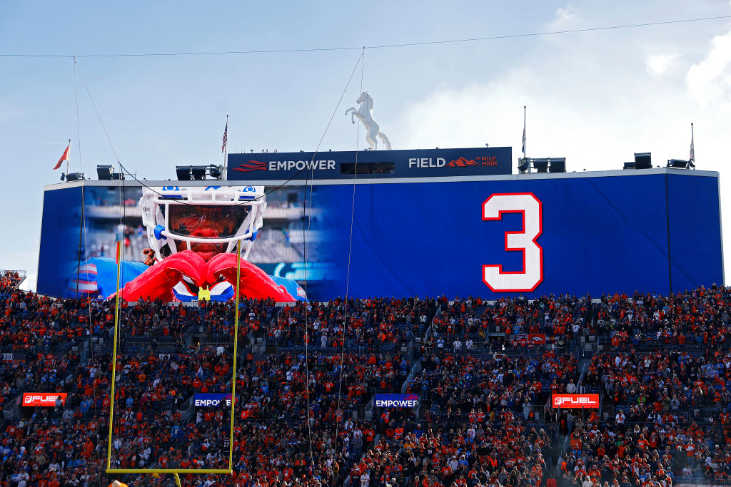 一块记分牌显示对水牛比尔队的达马尔·哈姆林表示支持。