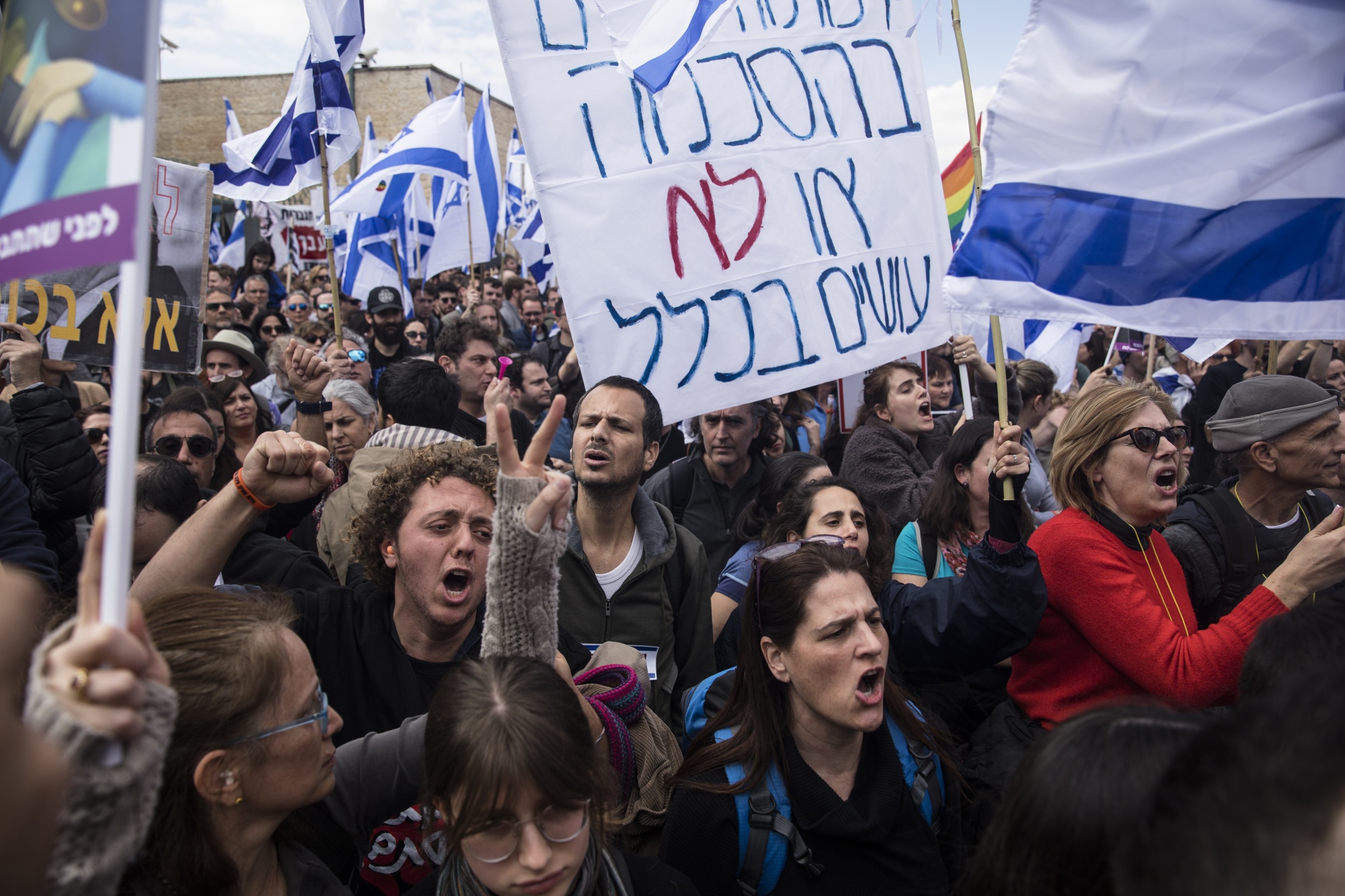 示威者参加了2023年2月13日在以色列议会大厦前举行的示威活动。 摄影师:阿米尔·莱维/盖蒂 还阅读:如果以色列急于进行司法改革,可能会伤害经济,萨默斯表示