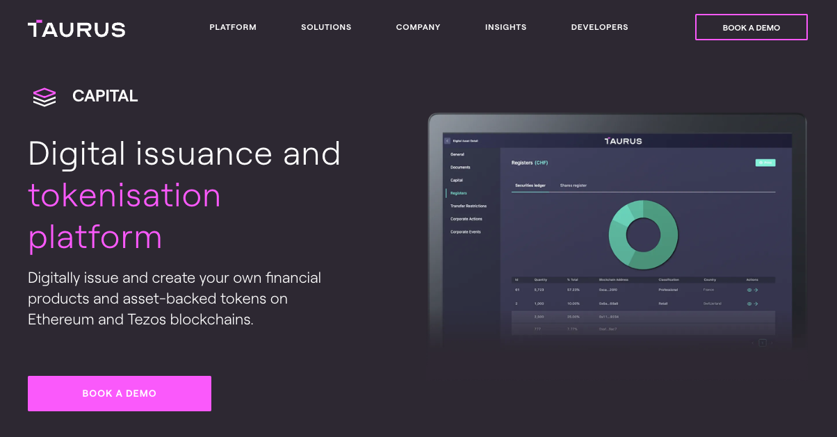 Taurus获得了瑞士金融监管机构FINMA的许可,并与8个国家的25家金融机构和企业客户合作。它们包括零售和在线银行、私人放贷人、经纪商和加密银行。