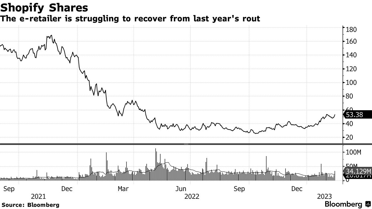 首席执行官Tobias Lütke正在努力从一次错误的赌注中恢复过来,即认为受疫情推动的在线购物激增将成为永久趋势。尽管他裁员、提高价格并扩大了对商家的服务,但该股票距离去年价值暴跌约四分之三后的完全恢复还有很长的路要走。