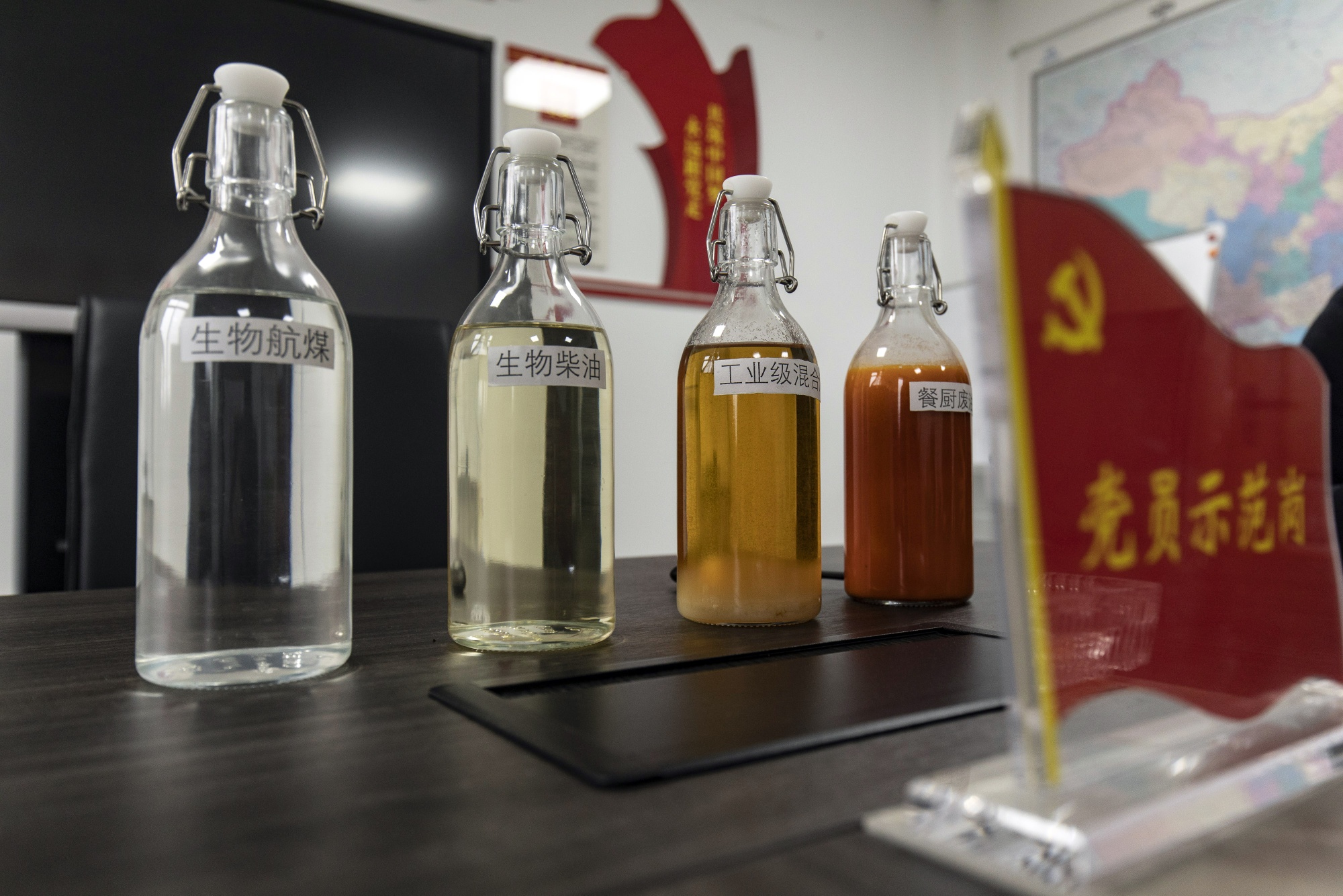 在成都四川金尚环保科技设施,收集的废油被取样,然后进行进一步处理。摄影师:Qilai Shen/Bloomberg这家总部位于成都的公司收集使用过的油,主要来自于1600万人口的四川省会的火锅餐馆,并去除钠和金属颗粒等杂质。其最终产品是一种通常被称为工业混合油的生物燃料前体,然后装在沿长江东行的船上,运往上海港口,从那里出口到全球最大的可持续航空燃料生产商Neste Oyj,以及包括BP Plc和Eni SpA在内的全球能源巨头,进一步精炼成生物柴油或喷气燃料。