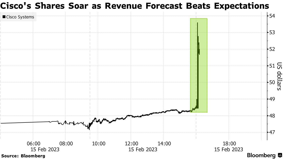 思科(CSCO)股票在预测显示科技支出持续的情况下上涨 - 彭博社
