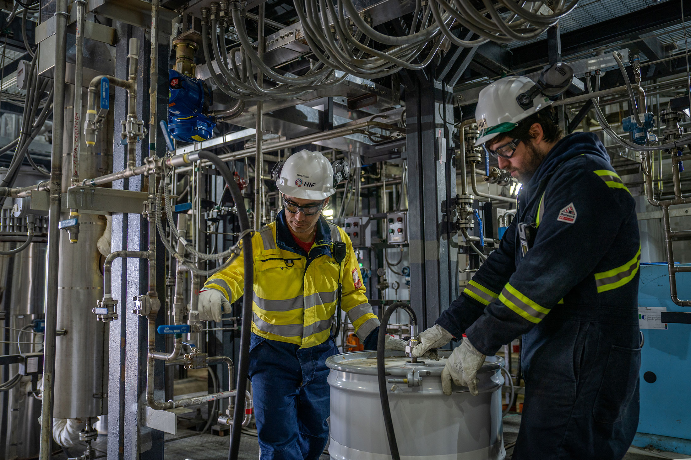哈鲁鬼,一个价值7400万美元的试点项目,位于普恩塔阿雷纳斯以北约40公里处,是这些努力的成果。在一个四面环野的地点,一座巨大的风力涡轮机矗立在一系列建筑物之上,其中一座建筑物内设有电解槽,这是一种将水分子分解为氧气和氢气的机器。前者释放到大气中,而氢气则被捕获并与二氧化碳结合,制成甲醇,这是一种更清洁燃烧的汽油替代品。德国西门子能源和保时捷,以及意大利能源公司Enel,是该项目的合作伙伴,该项目于2020年宣布,并于去年年底投入运营。