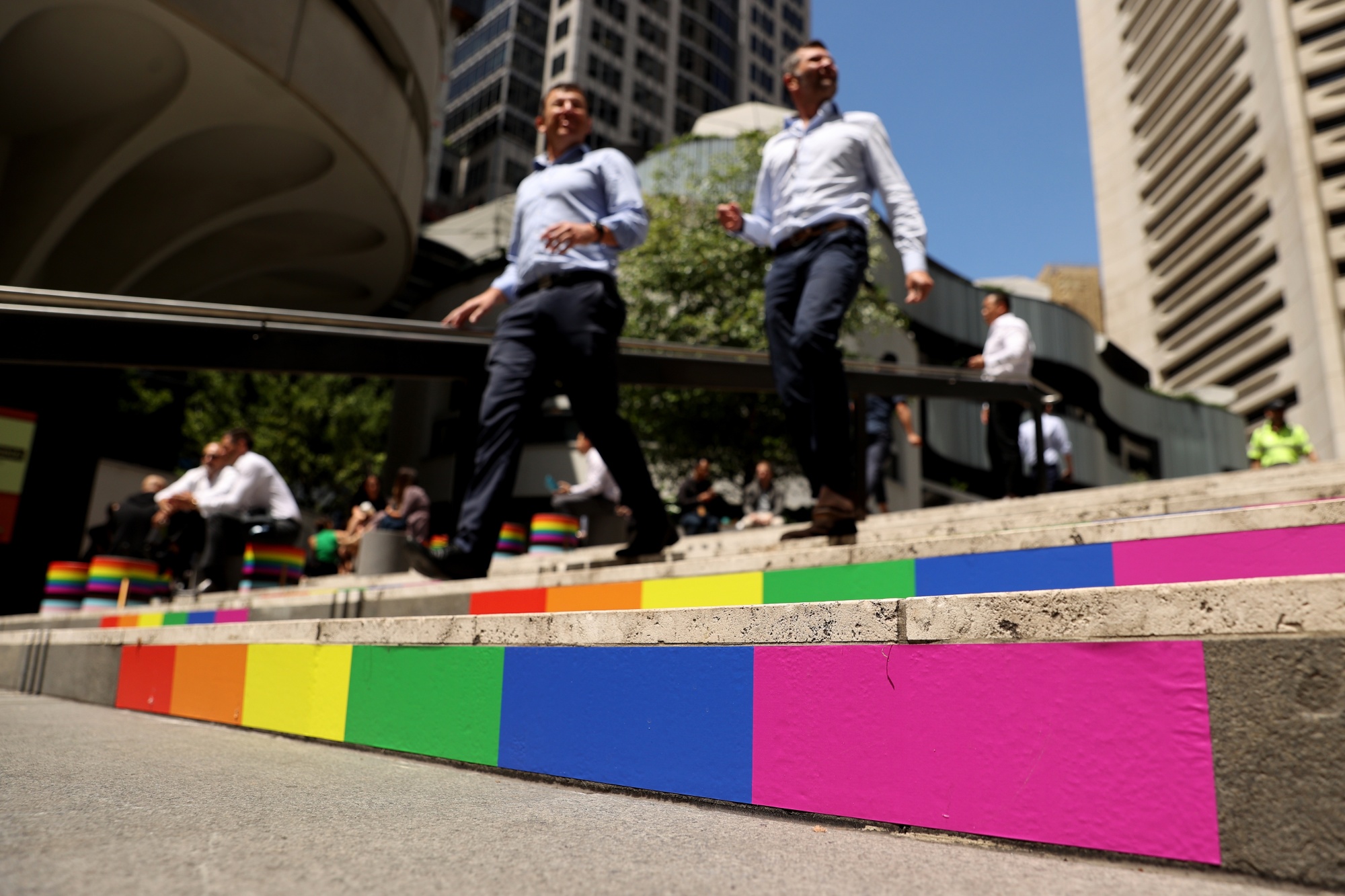 悉尼中央商务区的彩虹色台阶,拍摄于2月15日。摄影师:Brendon Thorne/Getty Images大约五年前,该国在一场有争议的公投中通过了同性婚姻合法化,反对者公开表达偏见的“不”运动的影响仍在持续。超过60% 的 LGBTQ 工作者在某种程度上隐藏他们的性取向,而且过去至少两年,这一比例一直在增加,根据2022年澳大利亚工作场所平等 指数显示。